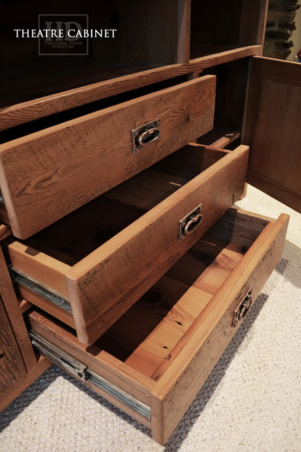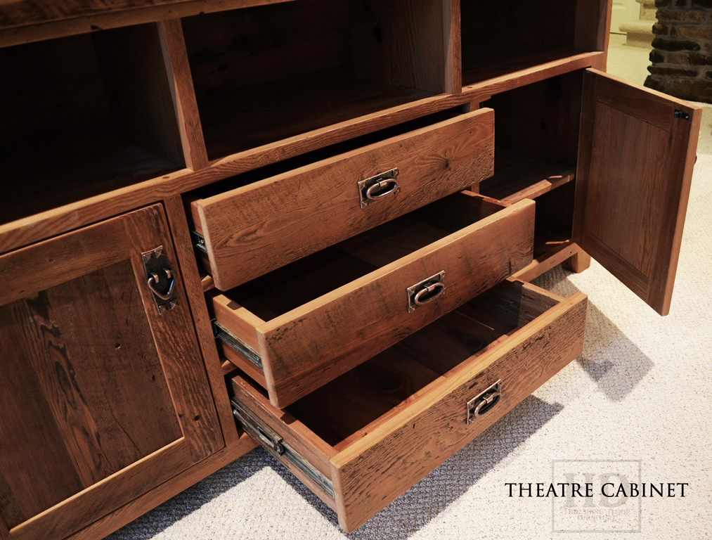Our entertainment units are typically a mix of drawers/doors and open spaces. The open areas are primarily for maximum reception for remotes to receivers. Electronics, while becoming simpler and more wireless, typically require various storage options, depending on the system. We customize according to your requirements.