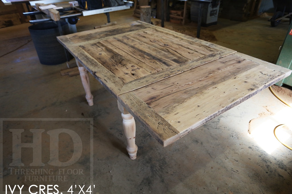 4′ x 4′ Reclaimed Wood Harvest Table with Epoxy/Polyurethane Finish for Ottawa Home