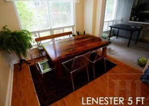 Specifications: 5 ft Harvest Table – 36″ wide – Reclaimed Hemlock Threshing Floor Construction – Premium epoxy + polyurethane finish – Tapered with a Notch Windbrace Beam Legs – Original Barn Floor Board Edges MaintainedÂÂ