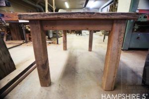 Specifications: 5 foot Harvest Table – 36 inches wide – Reclaimed Hemlock Threshing Floor Construction – Premium [light] epoxy/polyurethane finish – Original barnwood edges maintained – Straight 4″x4″ Windbrace Beam LegsÂ