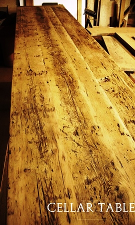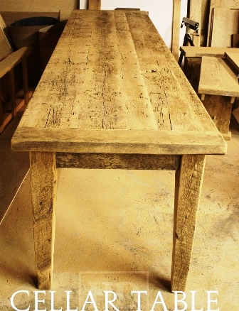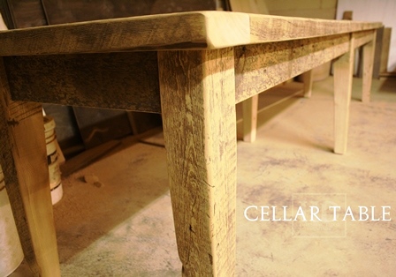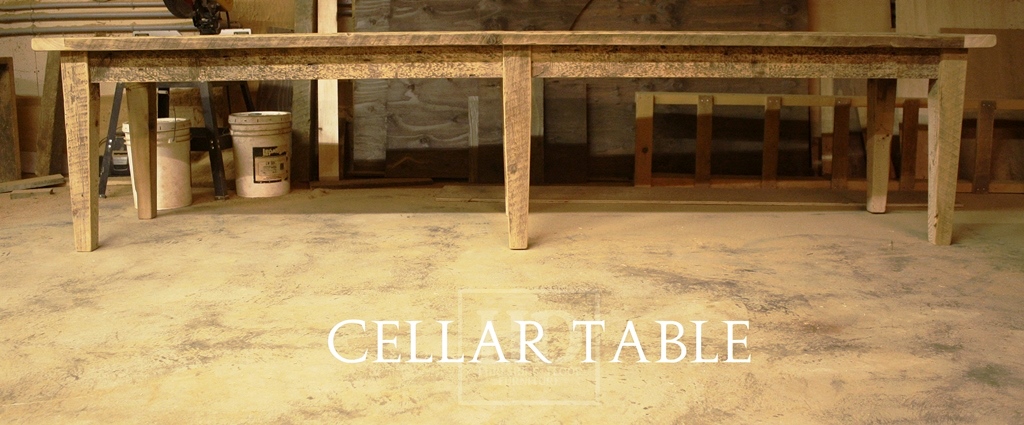 11 ft Custom Reclaimed Wood Harvest Table with Six Legs in Waterloo, Ontario Wine Cellar