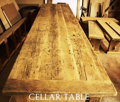 Reclaimed Wood Harvest Table in Waterloo, Ontario Wine Cellar