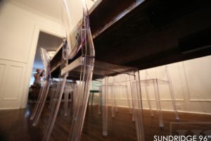 Specs: 8 ft Harvest Table – 42″ wide -Reclaimed Hemlock 2″ Top – Tapered with a Notch Legs – Premium epoxy/ high gloss polyurethane finish – Original barnwood edges maintained