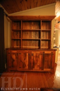 Hutch Details: Custom Reclaimed Wood Hutch Elizabethtown Ontario- Premium epoxy/polyurethane finish – Reclaimed Hemlock Threshing Floor and Grainery Board Construction