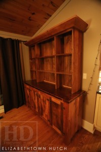 Hutch Details: Custom Reclaimed Wood Hutch Elizabethtown Ontario- Premium epoxy/polyurethane finish – Reclaimed Hemlock Threshing Floor and Grainery Board Construction