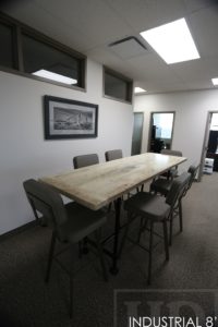 Details: 8 ft Reclaimed Wood Office Table – 30″ wide – 42″ Bar Height – Industrial Piping Style Base – Reclaimed Hemlock Threshing Floor 2″ Top – Bleached Greytone Treatment – Premium epoxy/polyurethane finish – Original barnwood edges maintainedÂÂ