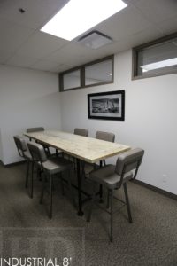 Details: 8 ft Reclaimed Wood Office Table – 30″ wide – 42″ Bar Height – Industrial Piping Style Base – Reclaimed Hemlock Threshing Floor 2″ Top – Bleached Greytone Treatment – Premium epoxy/polyurethane finish – Original barnwood edges maintainedÂÂ