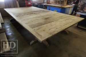 Ontario Reclaimed Wood Pedestal Tables by HD Threshing Floor Furniture – Hand-Hewn Beam Pedestals Recovered from Pioneer Barn Timber Frames – Tops Reclaimed from Old Threshing Floors [Barn Floor Board]Â