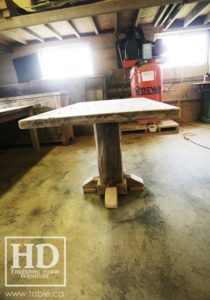 Ontario Reclaimed Wood Pedestal Tables by HD Threshing Floor Furniture – Hand-Hewn Beam Pedestals Recovered from Pioneer Barn Timber Frames – Tops Reclaimed from Old Threshing Floors [Barn Floor Board]Â