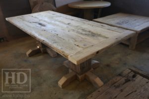 Ontario Reclaimed Wood Pedestal Tables by HD Threshing Floor Furniture – Hand-Hewn Beam Pedestals Recovered from Pioneer Barn Timber Frames – Tops Reclaimed from Old Threshing Floors [Barn Floor Board]Â