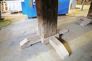 Ontario Reclaimed Wood Pedestal Tables by HD Threshing Floor Furniture – Hand-Hewn Beam Pedestals Recovered from Pioneer Barn Timber Frames – Tops Reclaimed from Old Threshing Floors [Barn Floor Board]Â