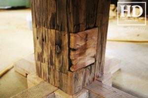 Ontario Reclaimed Wood Pedestal Tables by HD Threshing Floor Furniture – Hand-Hewn Beam Pedestals Recovered from Pioneer Barn Timber Frames – Tops Reclaimed from Old Threshing Floors [Barn Floor Board]Â