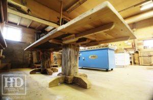 Ontario Reclaimed Wood Pedestal Tables by HD Threshing Floor Furniture – Hand-Hewn Beam Pedestals Recovered from Pioneer Barn Timber Frames – Tops Reclaimed from Old Threshing Floors [Barn Floor Board]Â