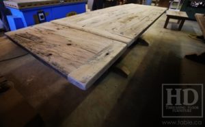 Ontario Reclaimed Wood Pedestal Tables by HD Threshing Floor Furniture – Hand-Hewn Beam Pedestals Recovered from Pioneer Barn Timber Frames – Tops Reclaimed from Old Threshing Floors [Barn Floor Board]Â