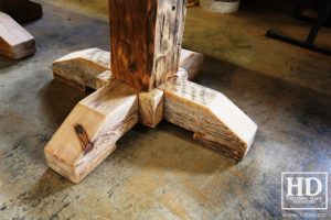 Ontario Reclaimed Wood Pedestal Tables by HD Threshing Floor Furniture – Hand-Hewn Beam Pedestals Recovered from Pioneer Barn Timber Frames – Tops Reclaimed from Old Threshing Floors [Barn Floor Board]Â