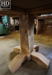 Ontario Reclaimed Wood Pedestal Tables by HD Threshing Floor Furniture – Hand-Hewn Beam Pedestals Recovered from Pioneer Barn Timber Frames – Tops Reclaimed from Old Threshing Floors [Barn Floor Board]Â