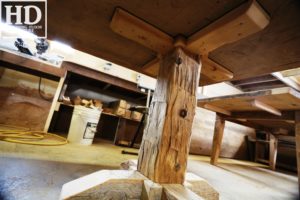 Ontario Reclaimed Wood Pedestal Tables by HD Threshing Floor Furniture – Hand-Hewn Beam Pedestals Recovered from Pioneer Barn Timber Frames – Tops Reclaimed from Old Threshing Floors [Barn Floor Board]Â
