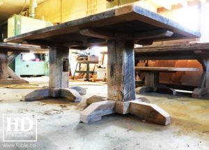 Ontario Reclaimed Wood Pedestal Tables by HD Threshing Floor Furniture – Hand-Hewn Beam Pedestals Recovered from Pioneer Barn Timber Frames – Tops Reclaimed from Old Threshing Floors [Barn Floor Board]Â