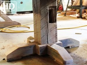 Ontario Reclaimed Wood Pedestal Tables by HD Threshing Floor Furniture – Hand-Hewn Beam Pedestals Recovered from Pioneer Barn Timber Frames – Tops Reclaimed from Old Threshing Floors [Barn Floor Board]Â
