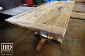Ontario Reclaimed Wood Pedestal Tables by HD Threshing Floor Furniture – Hand-Hewn Beam Pedestals Recovered from Pioneer Barn Timber Frames – Tops Reclaimed from Old Threshing Floors [Barn Floor Board]Â
