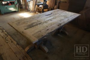 Ontario Reclaimed Wood Pedestal Tables by HD Threshing Floor Furniture – Hand-Hewn Beam Pedestals Recovered from Pioneer Barn Timber Frames – Tops Reclaimed from Old Threshing Floors [Barn Floor Board]Â