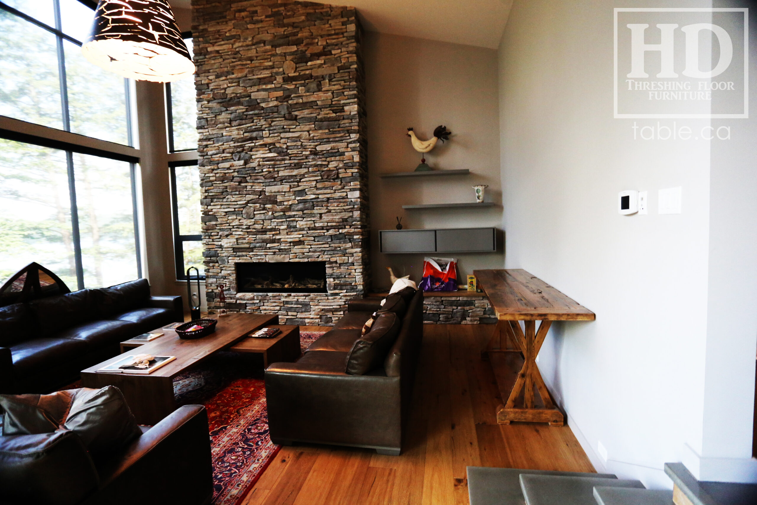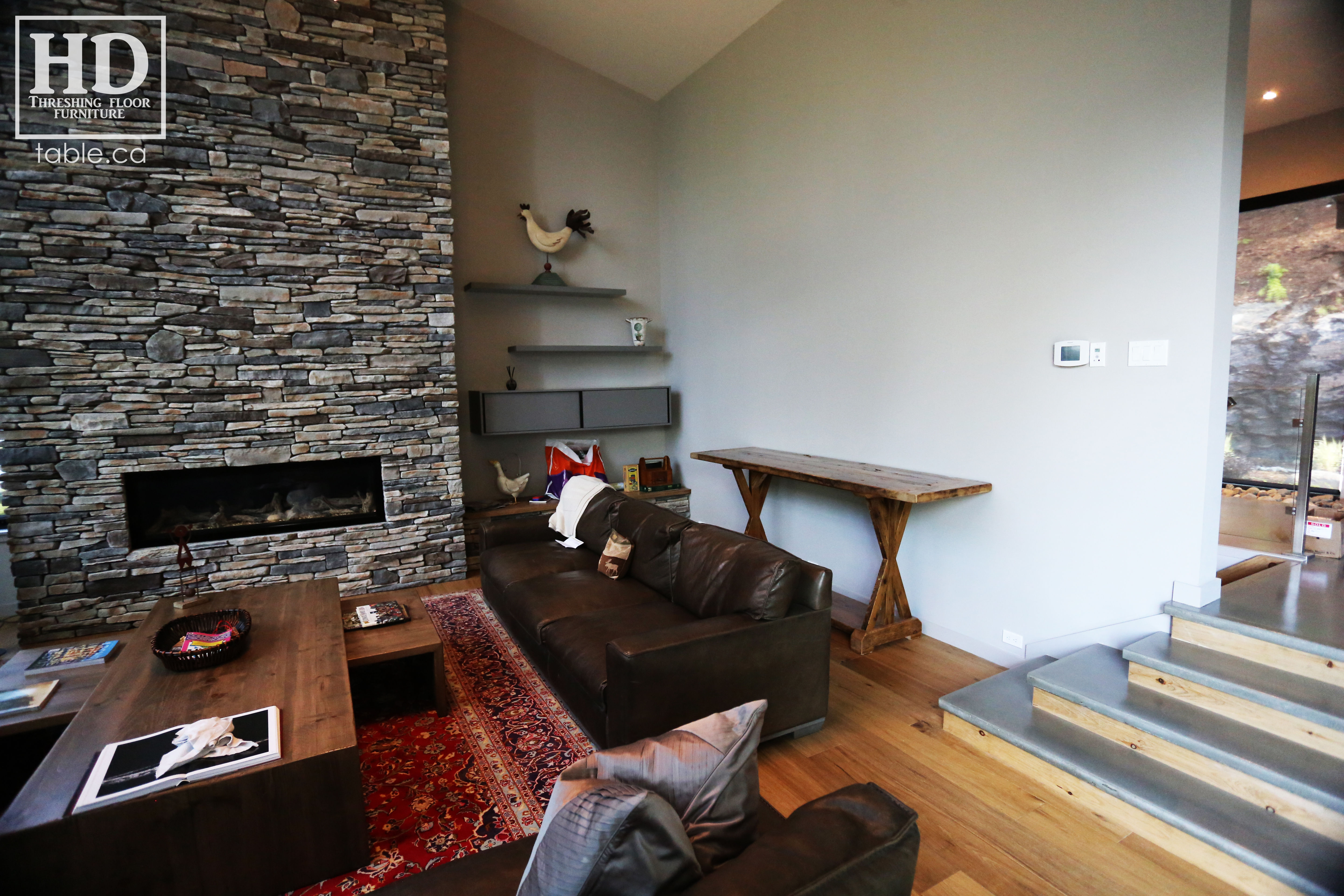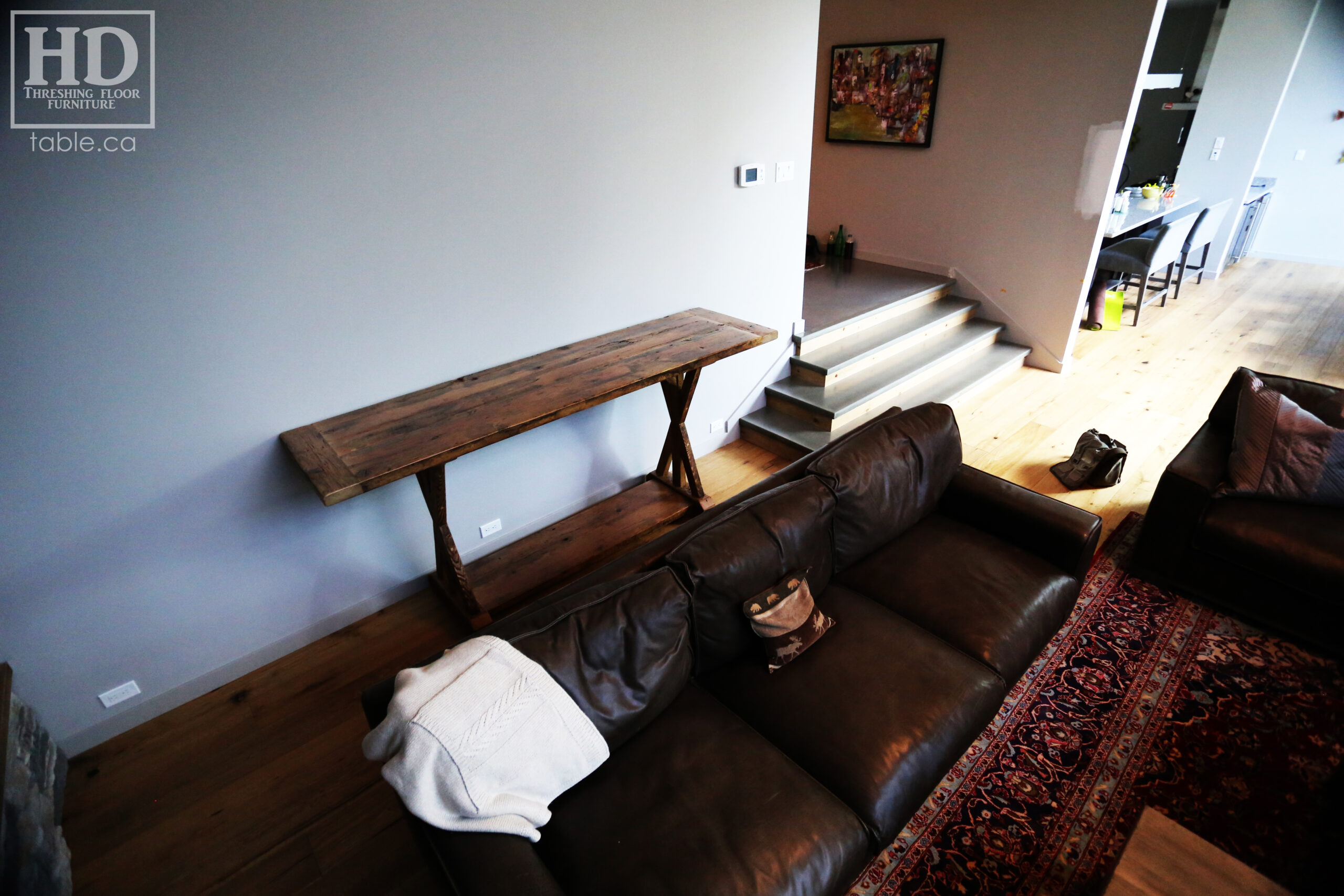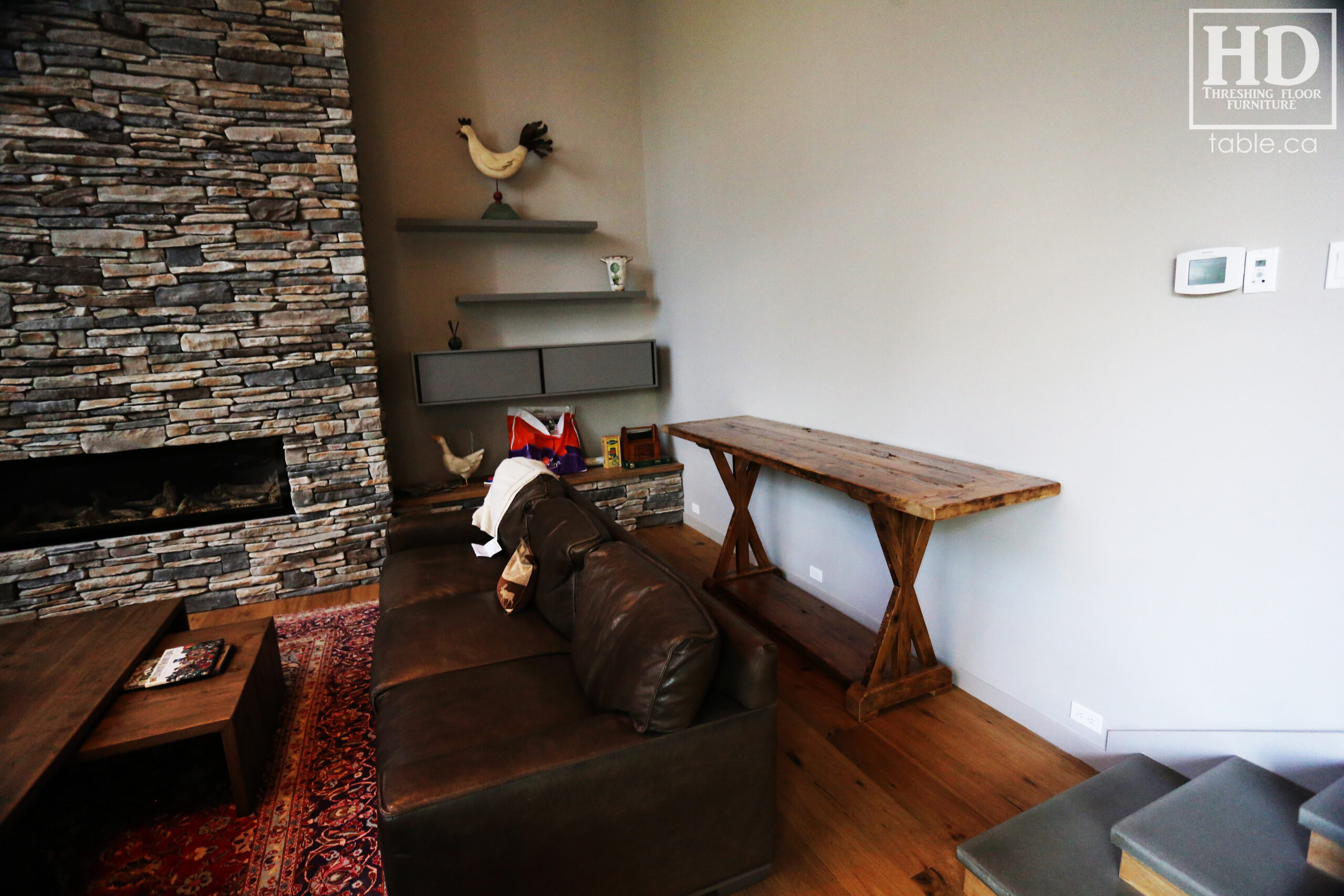 Tagged barnwood table, console table, cottage furniture canada, epoxy, HD Threshing, HD Threshing Floor Furniture, Ontario, reclaimed wood, reclaimed wood epoxy finish, reclaimed wood furniture, reclaimed wood table, rustic furniture canada, sawbuck style, Sawbuck Table, side table, sofa table, threshing table