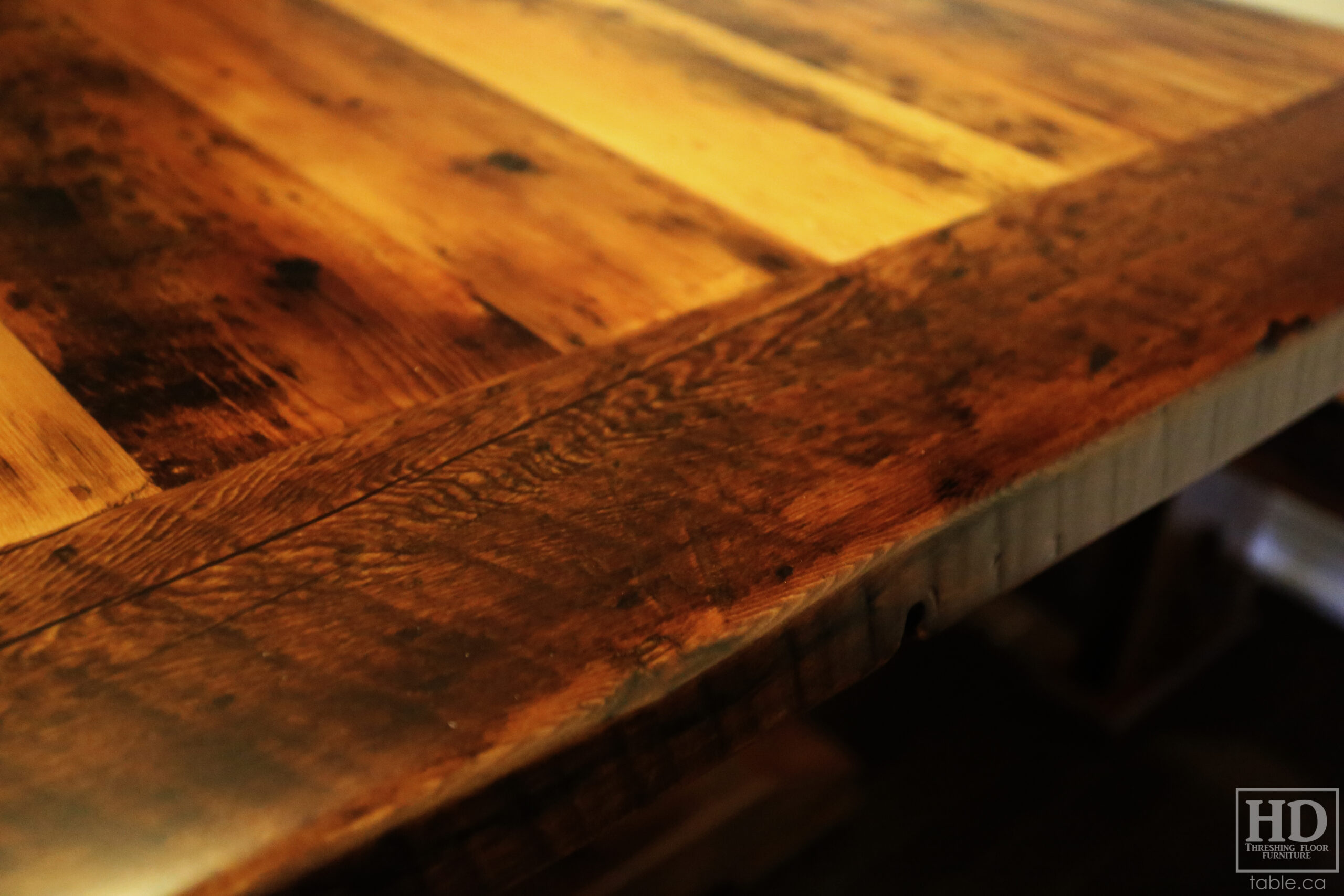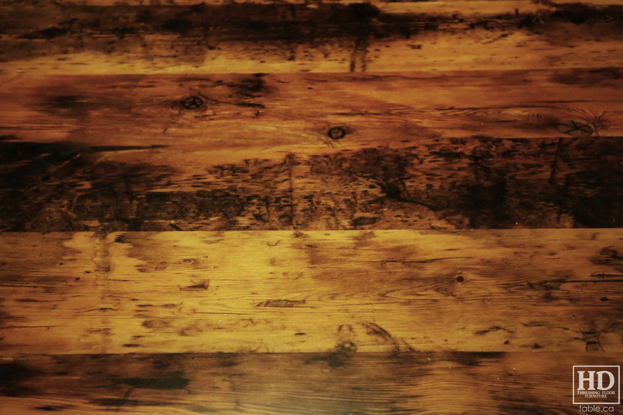 Old growth hemlock has a broad range of brown/black tones coming from the age of the wood. Here’s a previous reclaimed wood table project we did using this species: