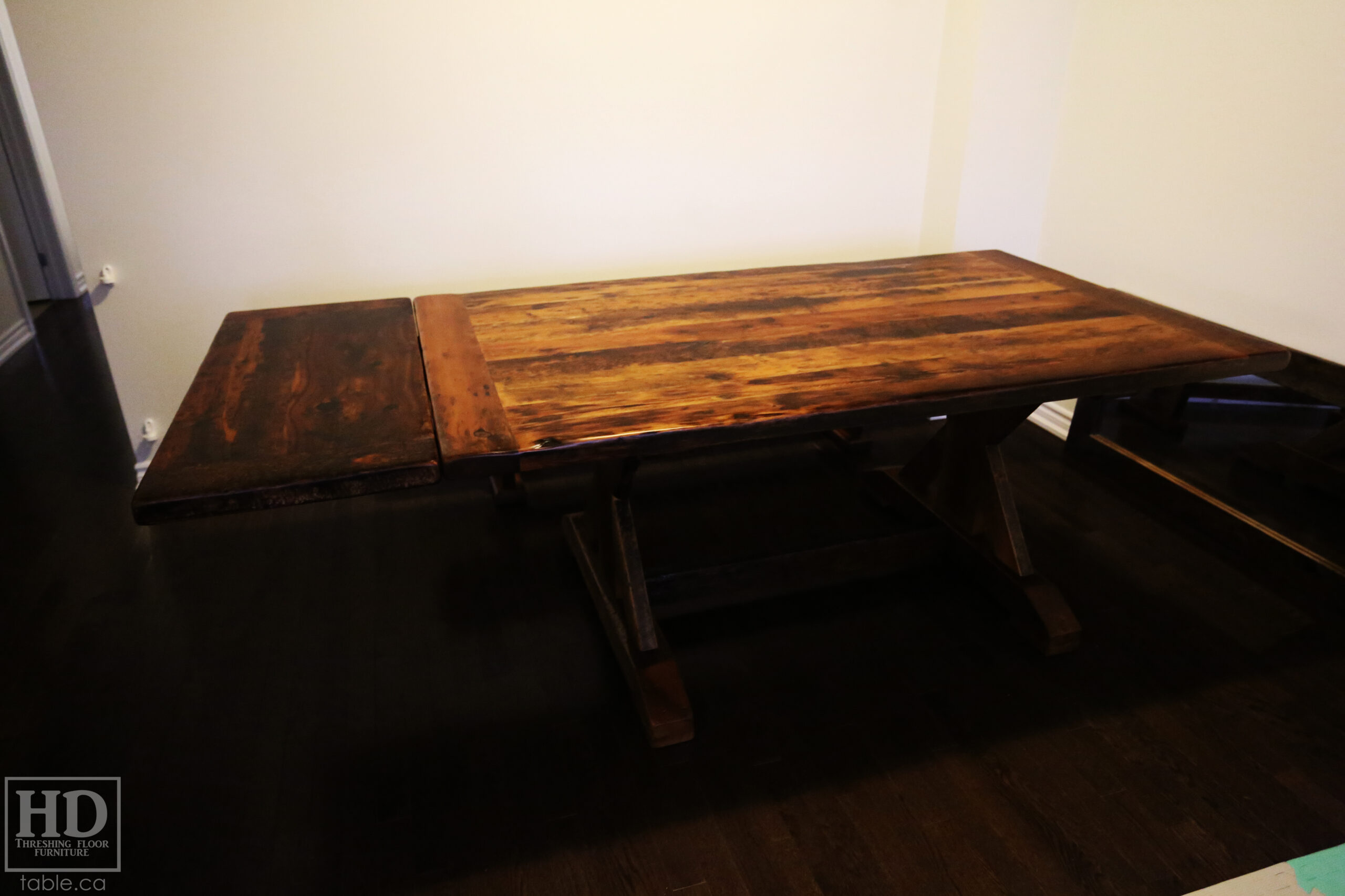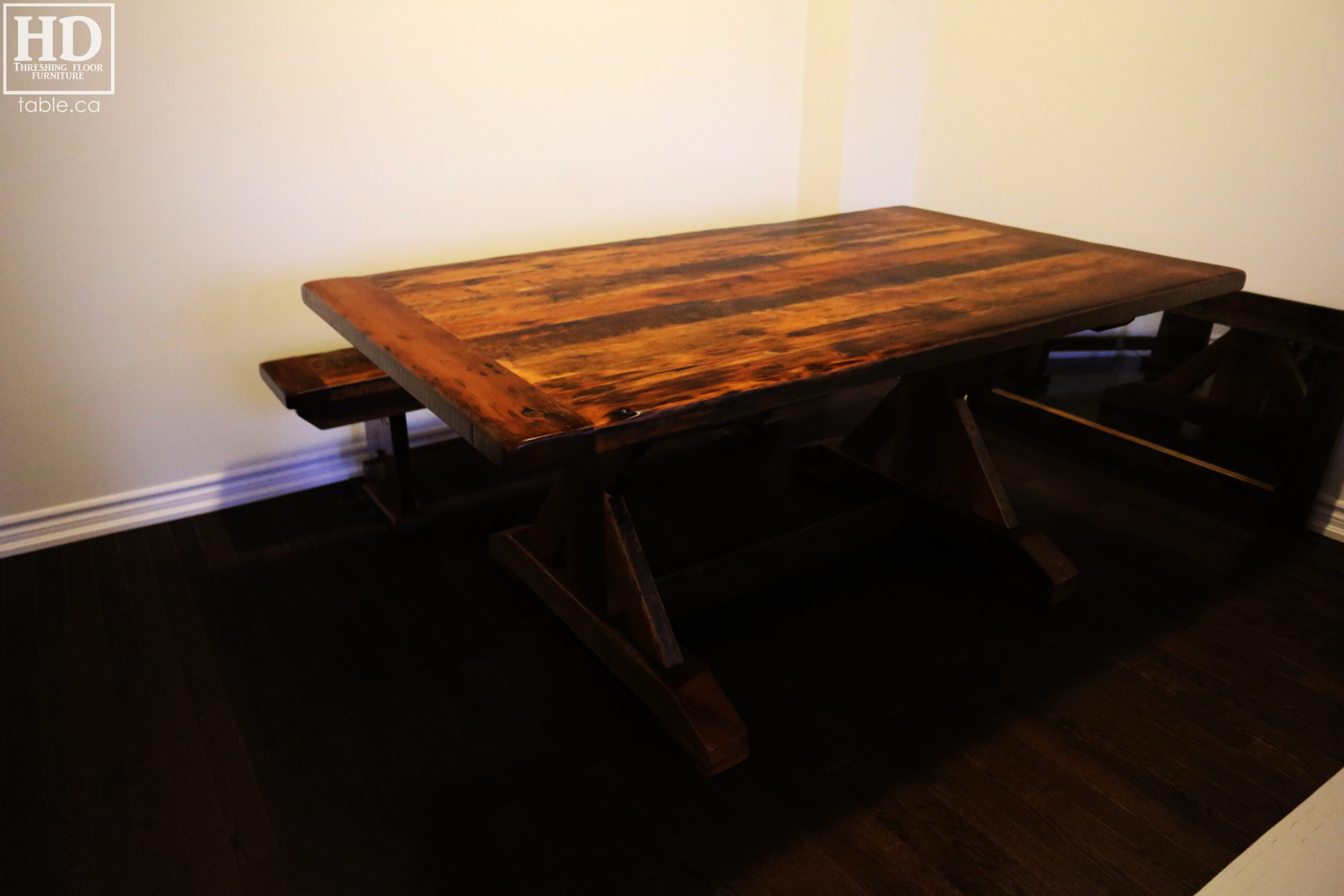 Tagged barnwood table, Cambridge, cottage furniture canada, epoxy, epoxy finished, EX-74, Gerald Reinink, hand made, HD Threshing, HD Threshing Floor Furniture, heavy duty, Hemlock, Ontario, Ontario furniture, Ontario made, Ontario wood, Pine, polyurethane, reclaimed wood, reclaimed wood epoxy finish, reclaimed wood furniture, reclaimed wood table, Resin, rustic furniture canada, sawbuck, sawbuck style, Sawbuck Table, solid wood, threshing table