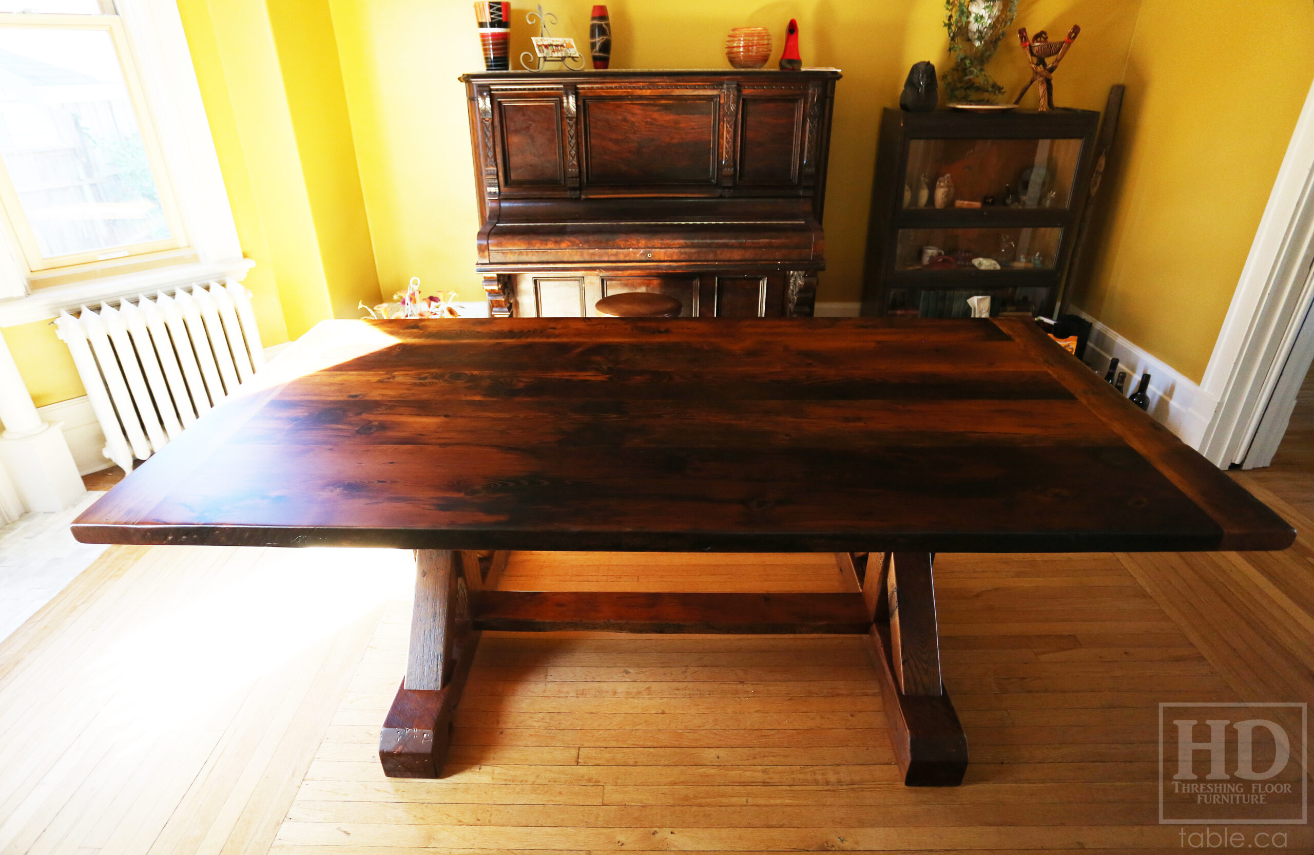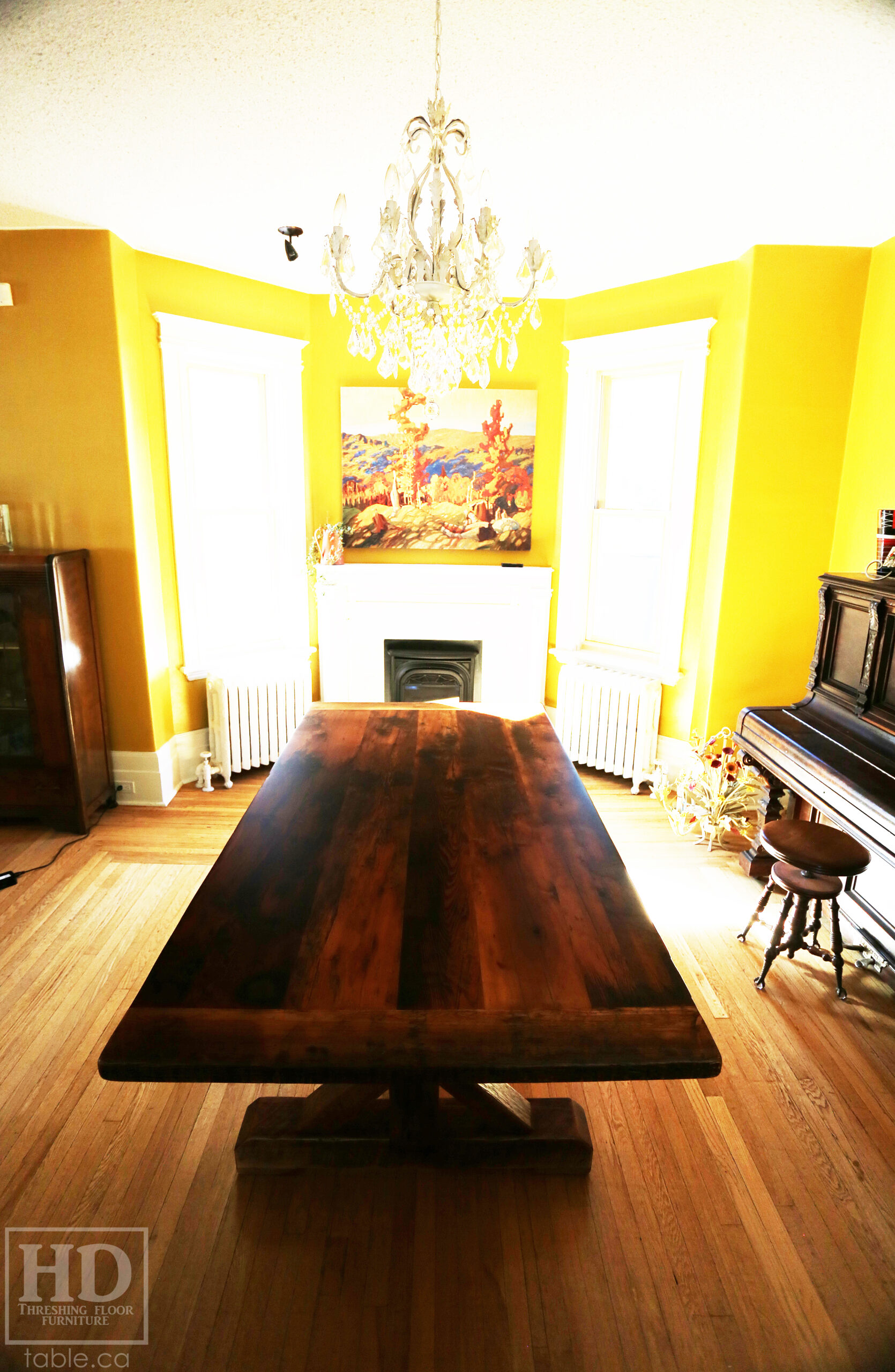 Tagged barnboard table, barnwood table, Distressed Wood Table, epoxy, epoxy finish, HD Threshing, HD Threshing Floor Furniture, Ontario made, Ontario wood, reclaimed wood table epoxy finish, Resin, rustic table, Sawbuck Table
