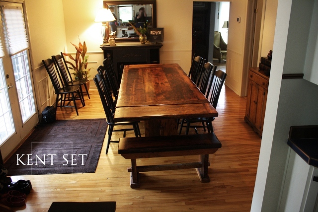 ![7 ft Trestle Table - 42" wide - Premium epoxy/matte polyurethane finish - Reclaimed Threshing Floor 2" Hemlock Top - Two 18" leaf extensions [making total length 9 ft when extended] - Two [matching] 42" benches - 8 Black Buckhorn chairs finish in black 7 ft Trestle Table - 42" wide - Premium epoxy/matte polyurethane finish - Reclaimed Threshing Floor 2" Hemlock Top - Two 18" leaf extensions [making total length 9 ft when extended] - Two [matching] 42" benches - 8 Black Buckhorn chairs finish in black](https://www.hdthreshing.dreamhosters.com/blog/blog/wp-content/uploads/2012/11/Reclaimed-Wood-Table-5.jpg)