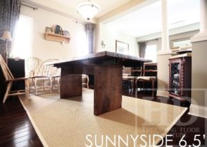 Description: 6.5 ft Rustic Reclaimed Wood Table – 3″ Joist Material Plank Base – Hemlock Threshing Floor Construction – Premium epoxy/polyurethane finish – Two 12″ Leaf Extensions – Original Barn Floor Board Edges MaintainedÂÂ