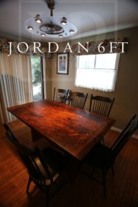 Details: 6 ft Reclaimed Wood Table – 6.5 ft wide – 3″ Joist plank style base – Reclaimed Pine Threshing Floor Construction – Premium epoxy & polyurethane finish – 5 Buckhorn Chairs / Wormy Maple / Polyurethane Clearcoat FinishÂÂ