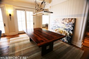 Specifications: 88″ Reclaimed Wood Cottage Table – 48″ wide – Sqaure Cavity in End Post – Premium epoxy & matte polyurethane finish – Rustic Reclaimed Hemlock Threshing Floor Barn Wood Construction – Original barn floor edges maintained – two 18″ leaf extensions