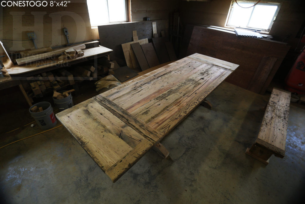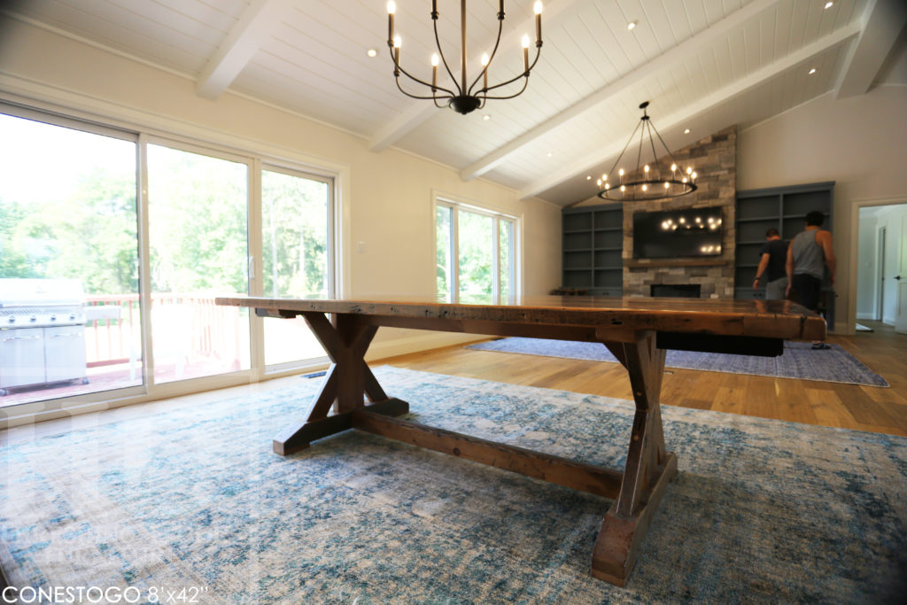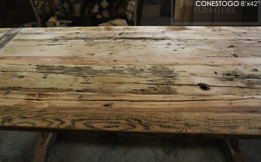 8’x42″ Reclaimed Wood Table with Greytone Treatment for Conestogo Home