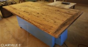 Description: 8 foot Rustic Reclaimed Wood Table – 48″ wide – X Shaped Stainless Steel Base- Premium epoxy/polyurethane finish – Solid Reclaimed Hemlock Threshing Floor Construction – Original barnwood edges maintainedÂÂ