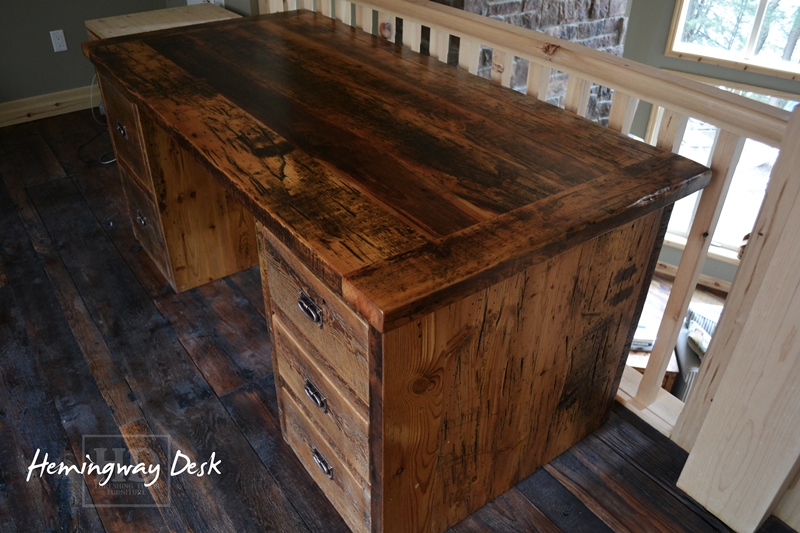 Desk Details: 6 ft Threshing Floor Walls Desk [ref: Hemingway] – 36†deep – 5 drawers – Premium epoxy/matte polyurethane finish – Reclaimed Wood Hemlock