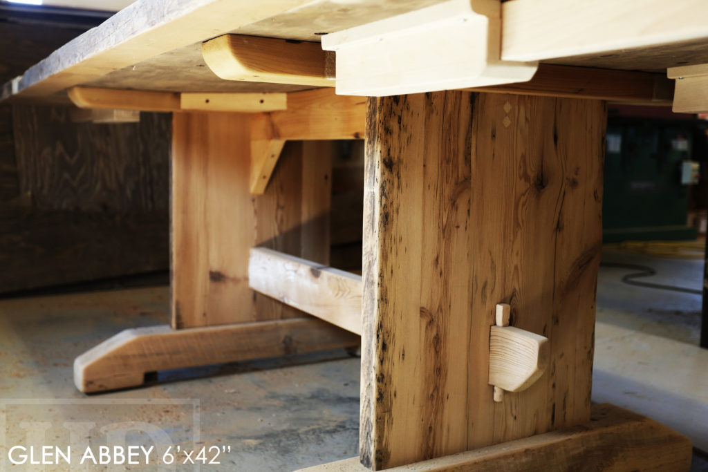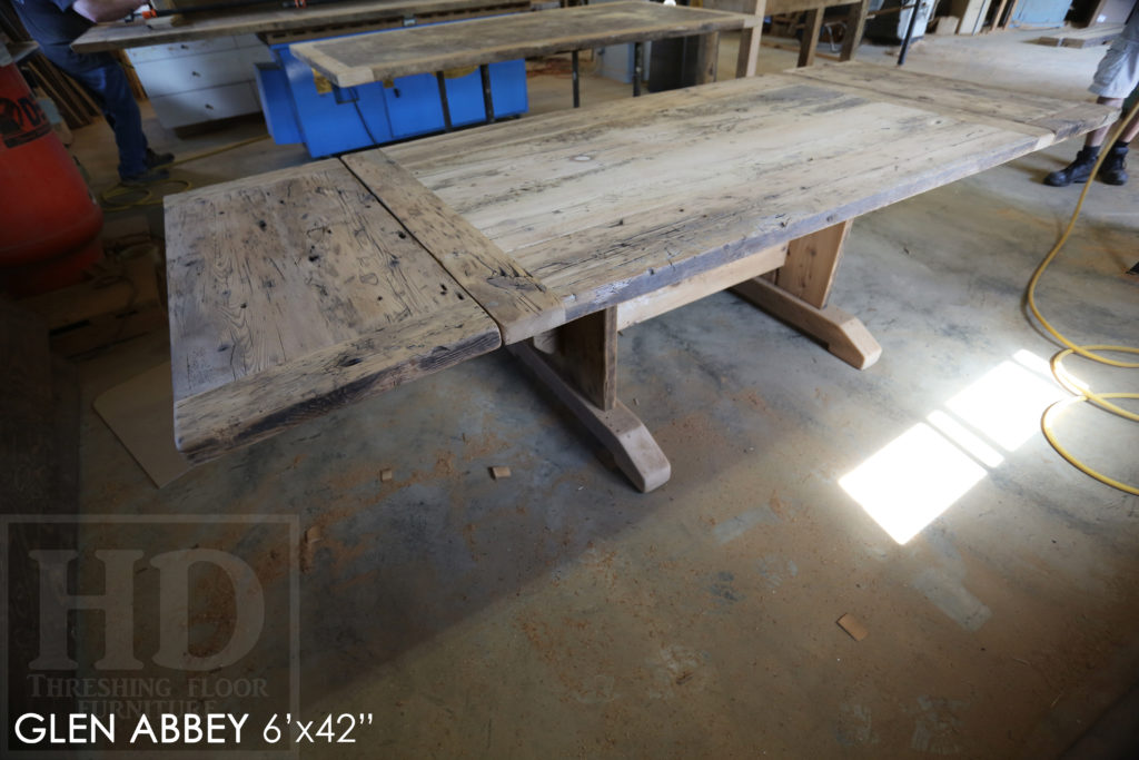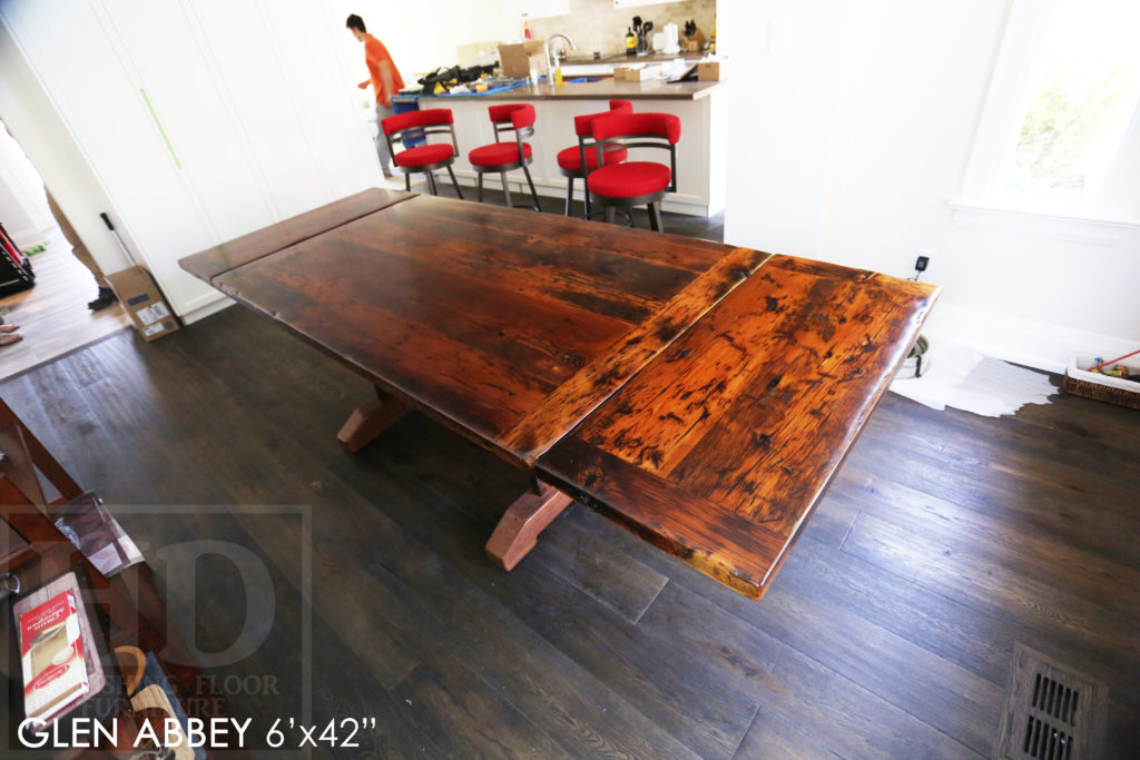 6’x42″ Reclaimed Wood Trestle Table with Two Leaves for Oakville Home