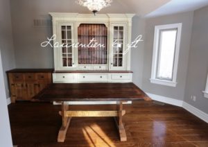 Specs: 6 ft Trestle Table – 42″ wide – Premium epoxy/matte polyurethane finish – Reclaimed Hemlock Threshing Floor Construction – Original Barnwood Distressing MaintainedÂÂ