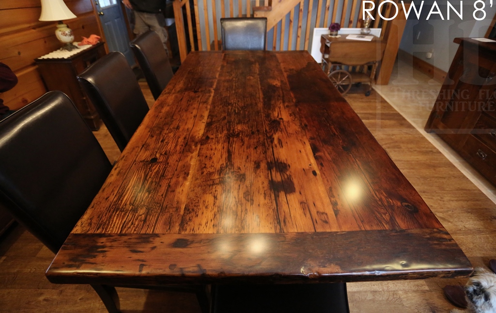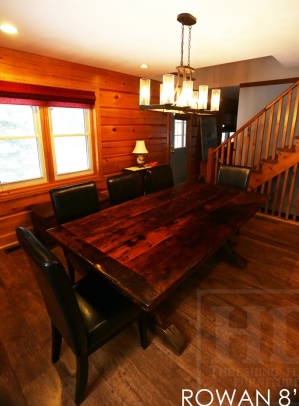 Reclaimed wood is great for pulling in tones from everywhere in the space and acting as a centerpiece. Every range of brown, black, and paler tones are typical in our hemlock tables. Check out this one we made for a client’s Wiarton cottage. See pics below!