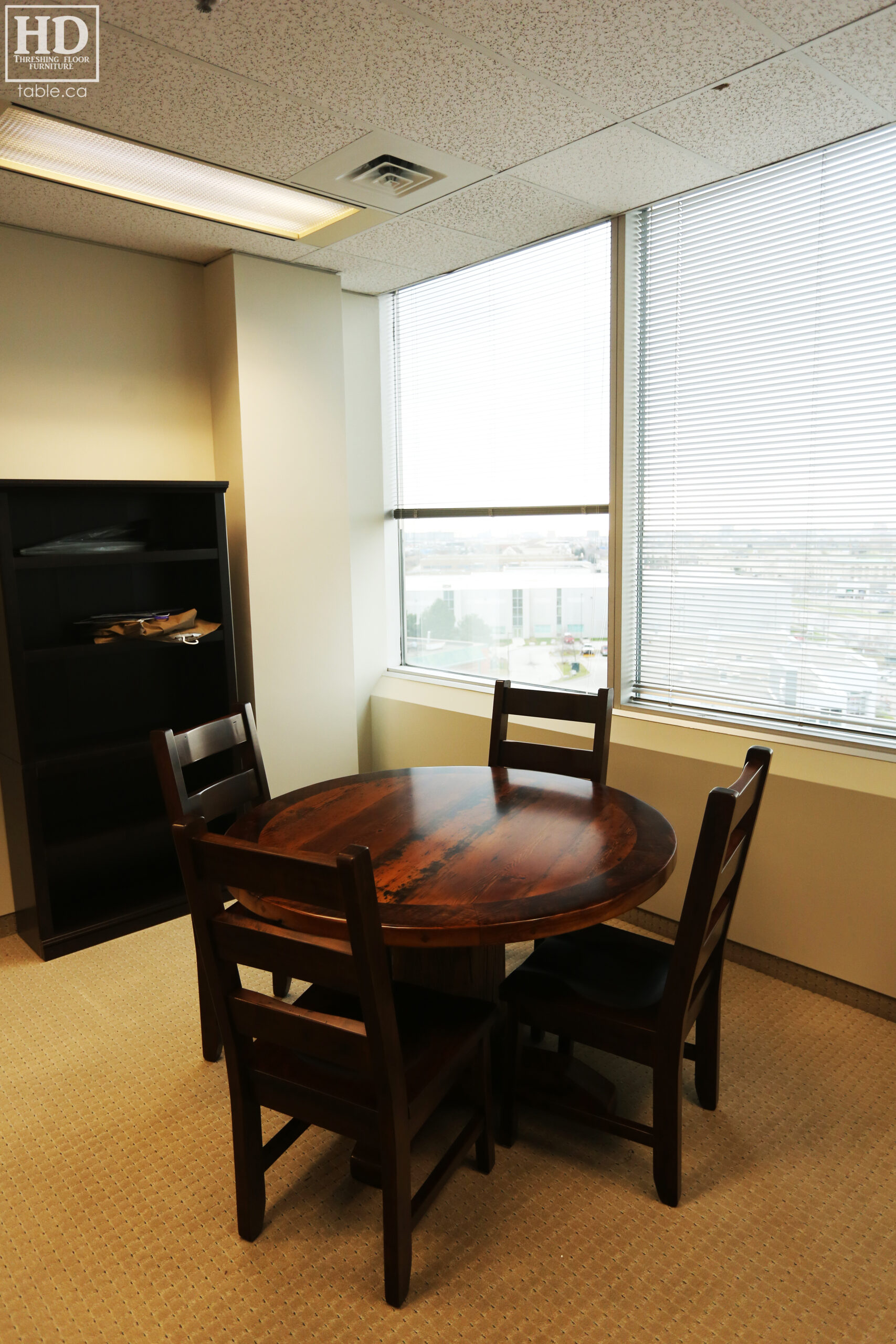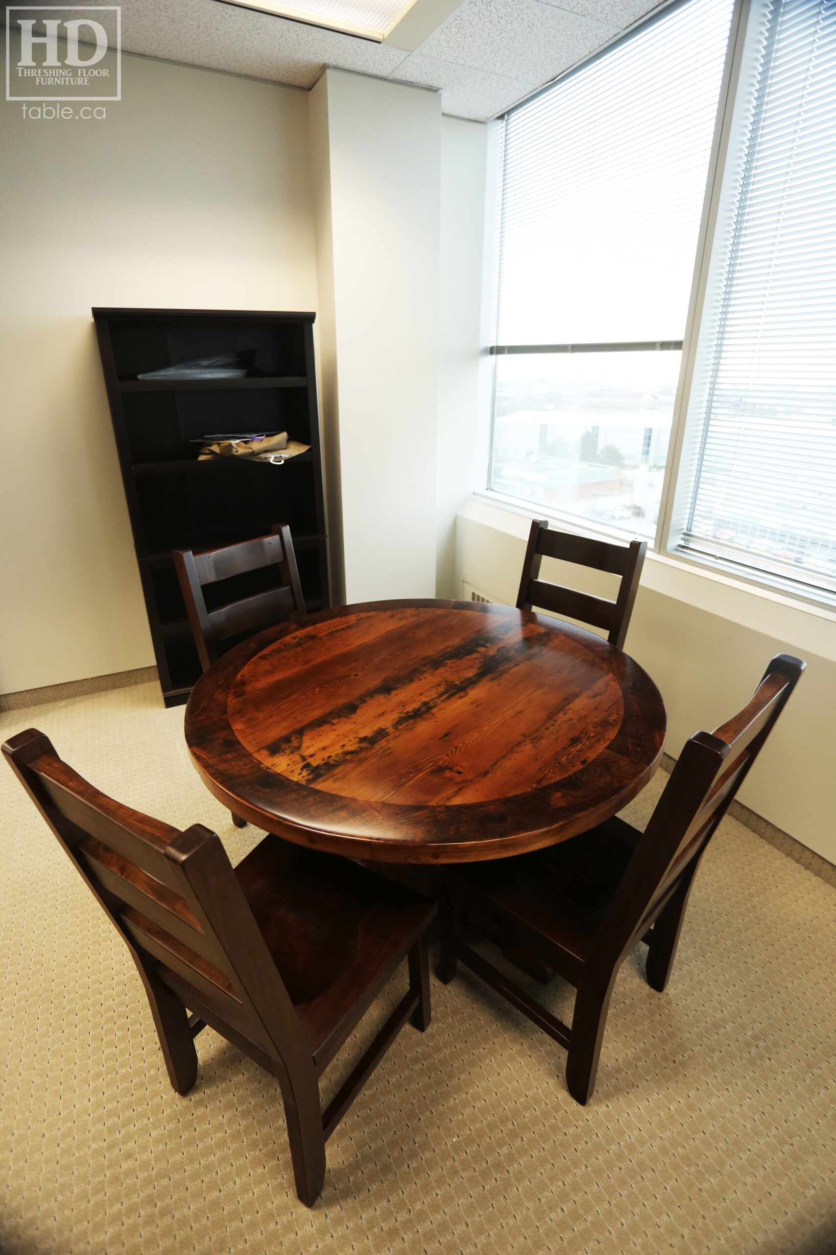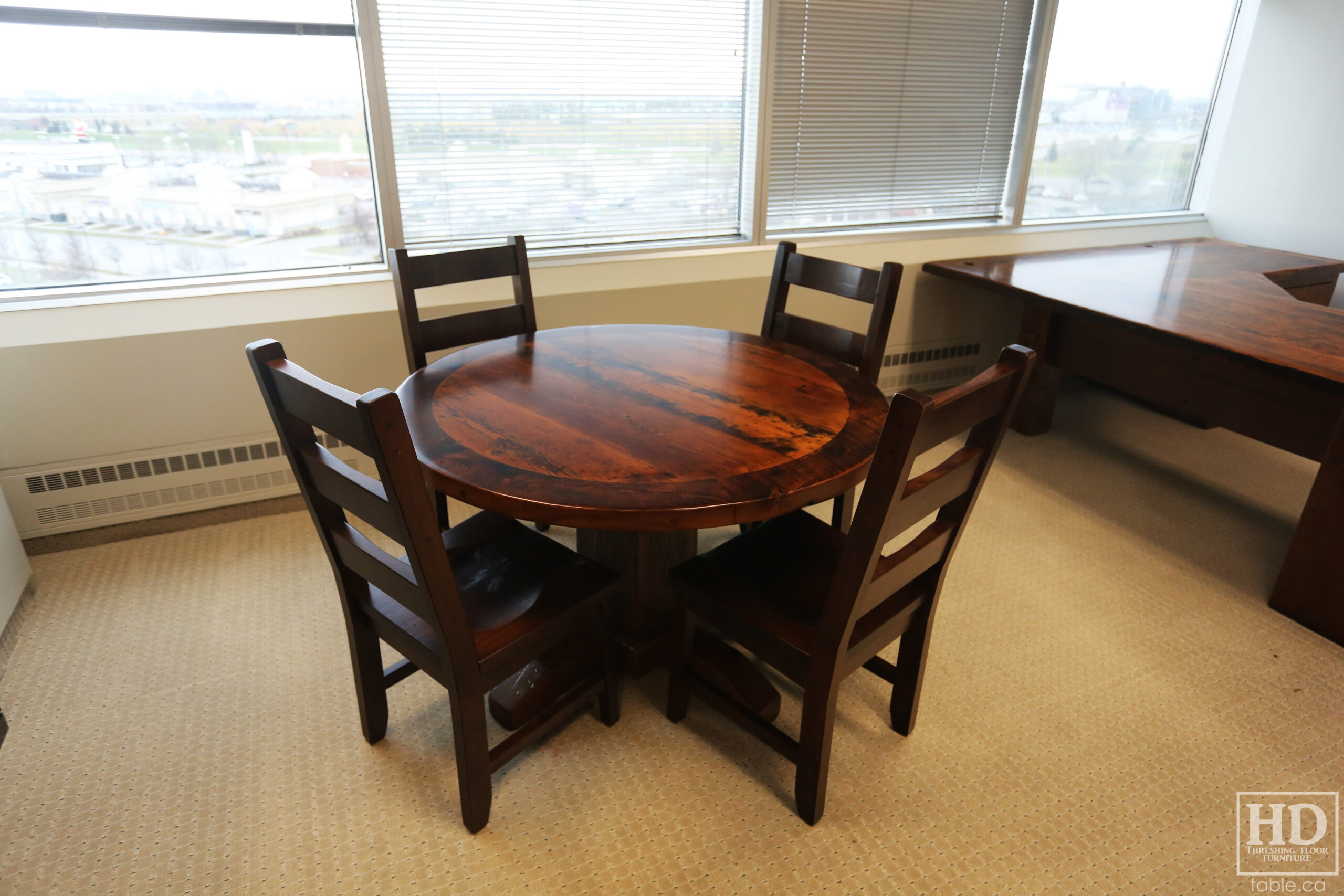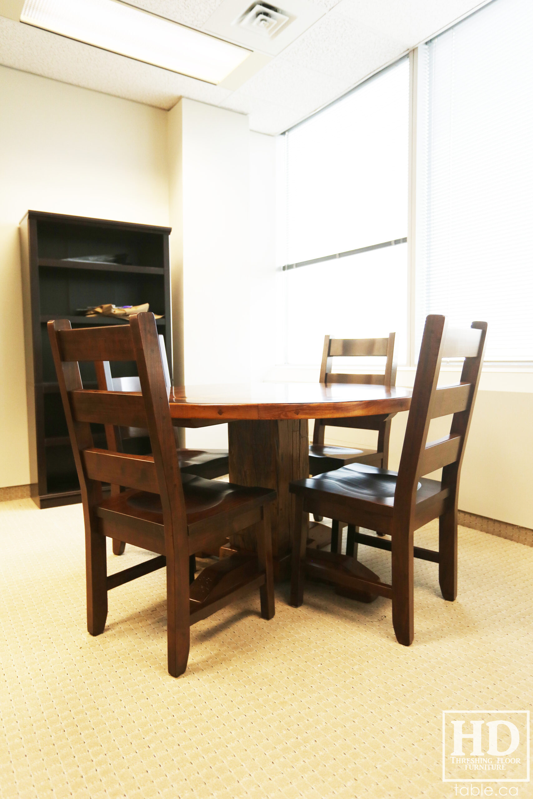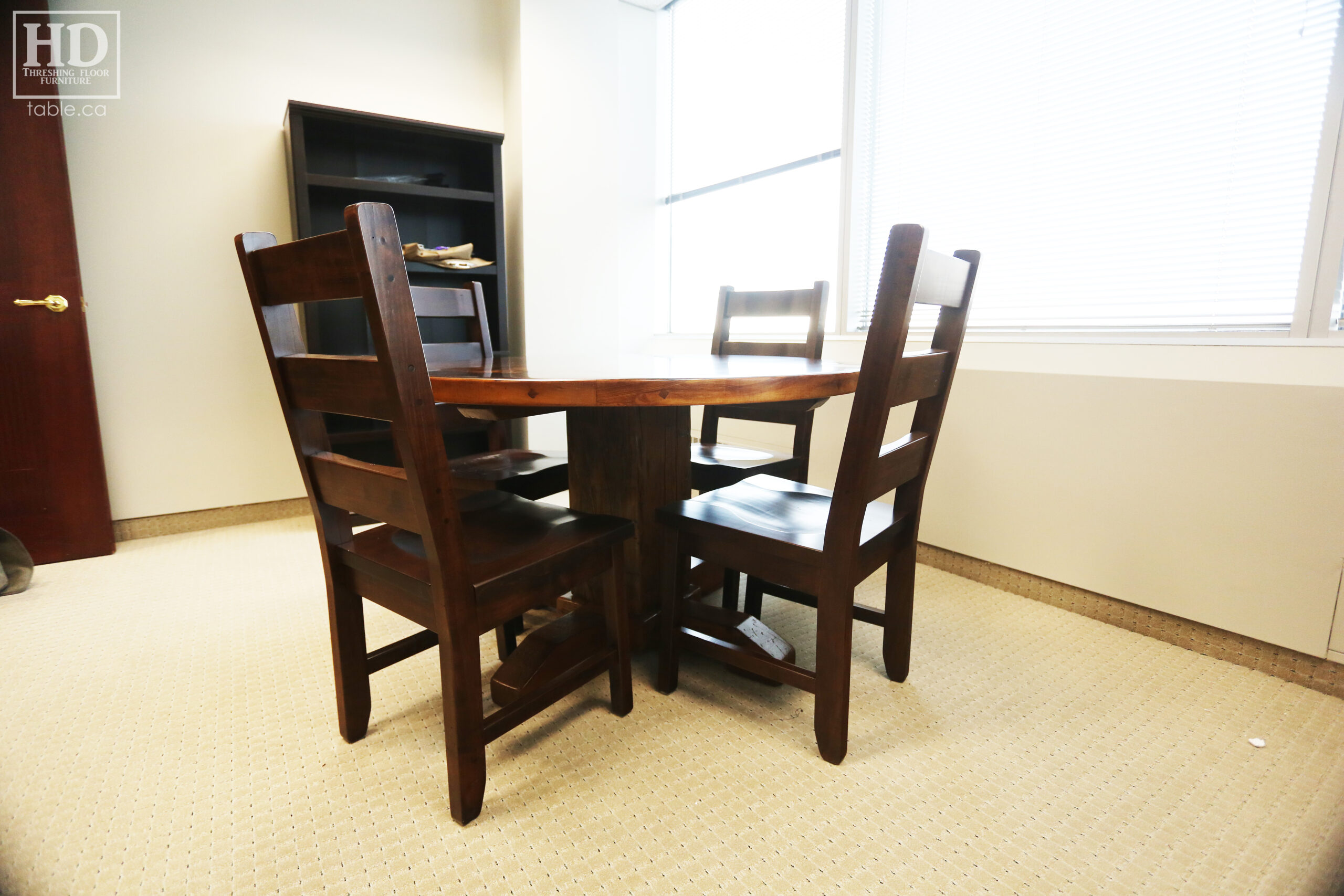 Tagged cottage furniture Ontario, cottage table Ontario, custom finished chairs, custom wood chairs, Distressed wood round table, epoxy finish, Gerald Reinink, HD Threshing Floor Furniture, mennonite built chairs, office furniture, office table, Ontario barns, Ontario barnwood, Ontario made, Ontario wood, polyurethane, reclaimed wood furniture, reclaimed wood table, round barnwood table, round boardroom table, round pedestal table, round reclaimed table, round reclaimed wood pedestal table, round table, rustic table, rustic wood table, solid wood, solid wood chair, threshing floor furniture, threshing floor table, threshing table, Toronto, wormy maple
