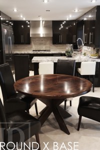 Details: 54″ Round Pedestal Table – X style base – Reclaimed Threshing Floor Hemlock – Premium epoxy/matte polyurethane finish