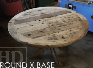 Round Table with X Base Reclaimed Threshing Floor Hemlock Gerald Reinink (12)