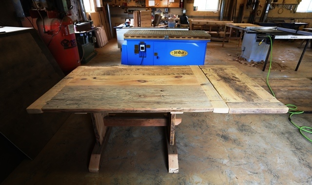 Custom Rustic Ontario Barnwood Trestle Table with Distressing Maintained