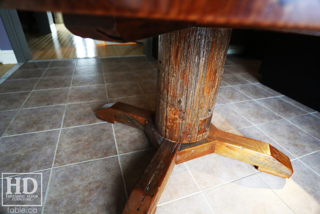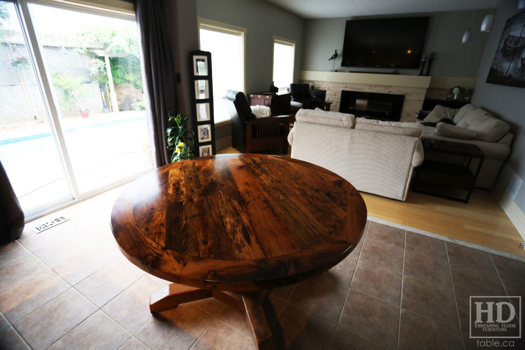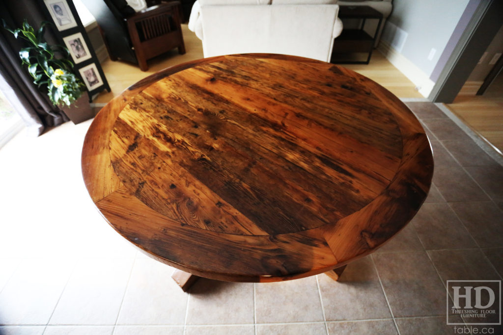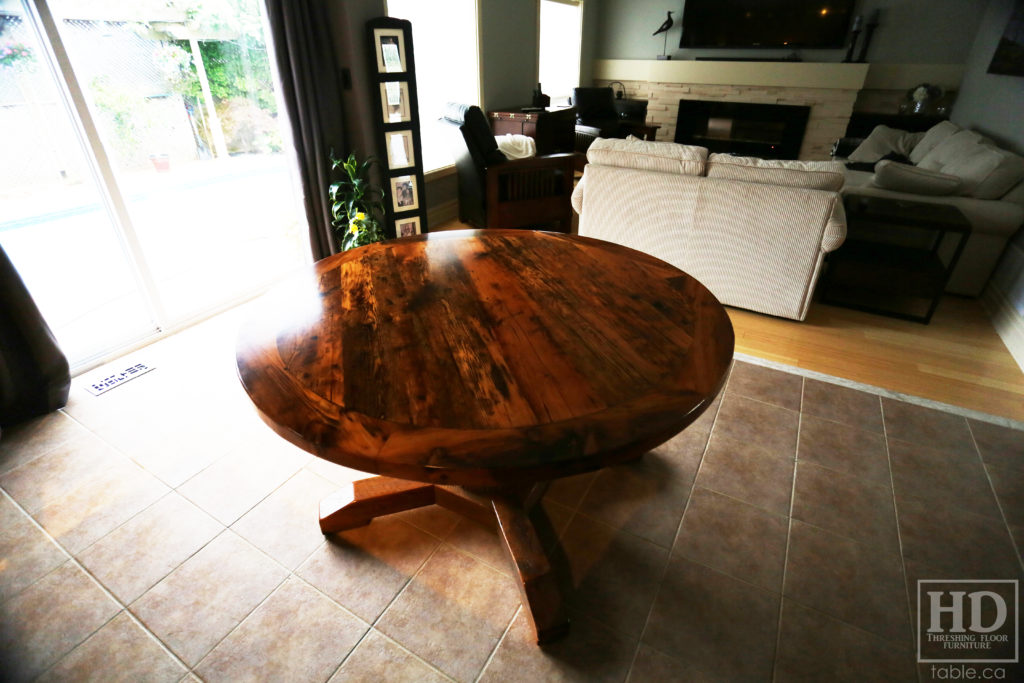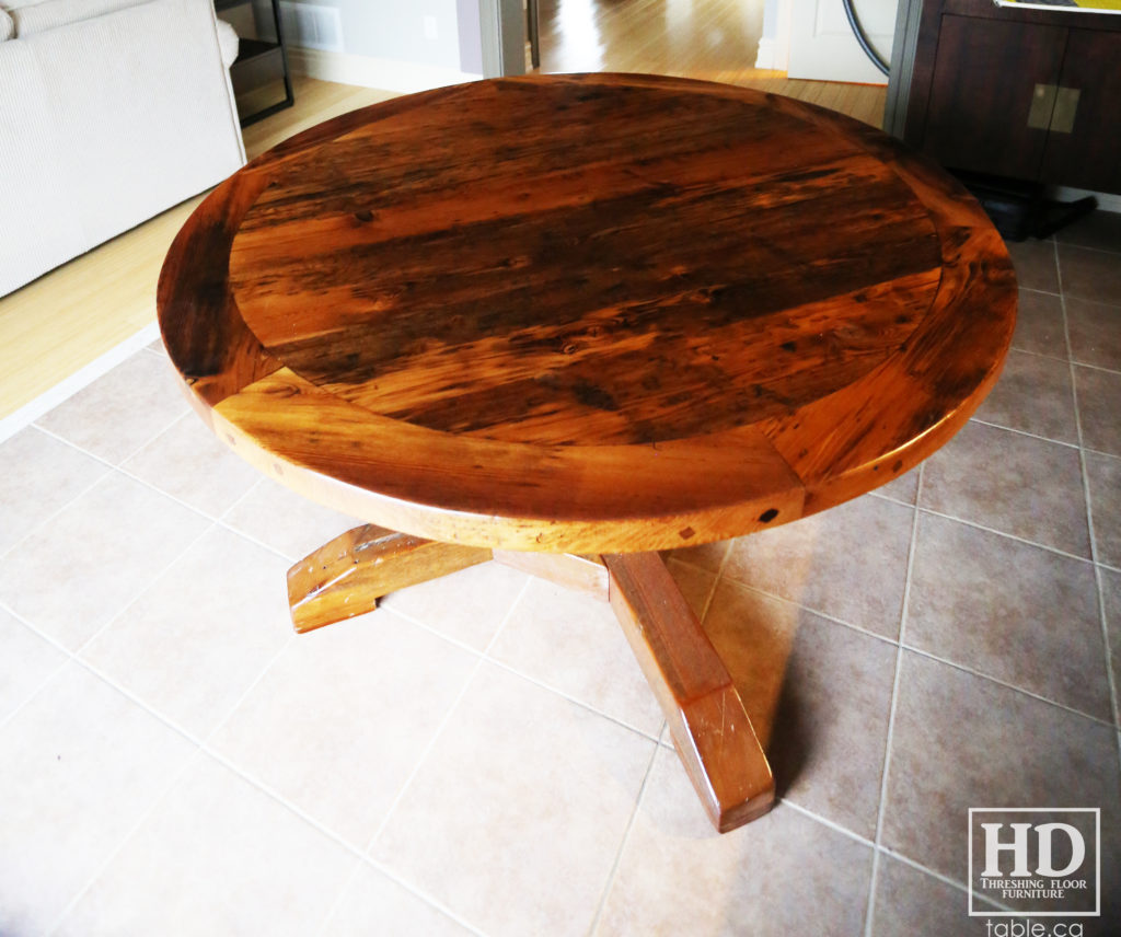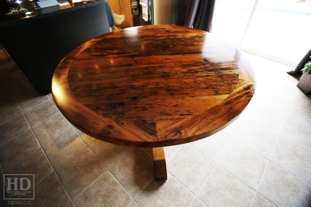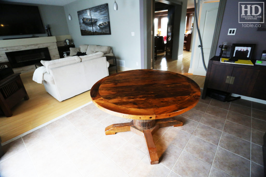Rustic Reclaimed Wood Round Table with Cedar Hydro Pole Base