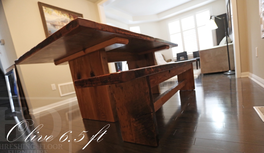 7 ft Modern Plank Style Base Table – 42″ wide – Reclaimed Threshing Floor Hemlock – Premium epoxy with a matte polyurethane topcoat – 7 ft [matching] bench