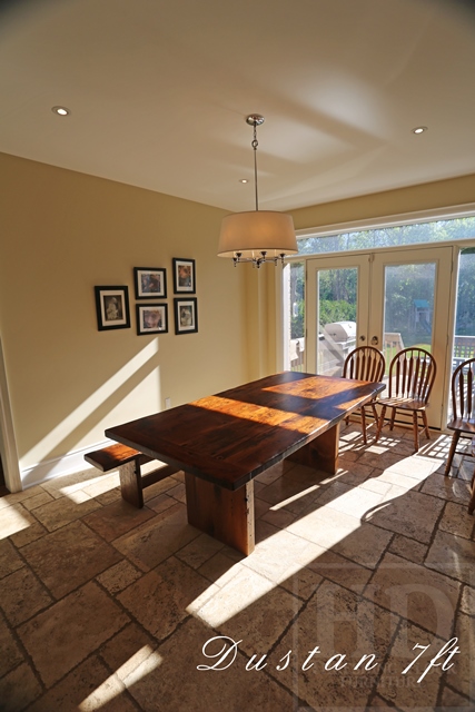 7 ft Modern Plank Style Base Table – 42″ wide – Reclaimed Threshing Floor Hemlock – Premium epoxy with a matte polyurethane topcoat – 7 ft [matching] bench