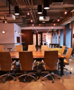 18′ Boardroom Table – 7′ wide – Made of four 9′ x 3.5′ tables – Leg Casters for easy table movement – Straight 4″x 4″ windbrace beams legs – Black skirting + legs – Reclaimed Pine – Premium epoxy/matte polyurethane finish