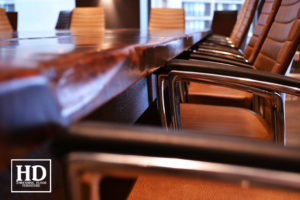18′ Boardroom Table – 7′ wide – Made of four 9′ x 3.5′ tables – Leg Casters for easy table movement – Straight 4″x 4″ windbrace beams legs – Black skirting + legs – Reclaimed Pine – Premium epoxy/matte polyurethane finish