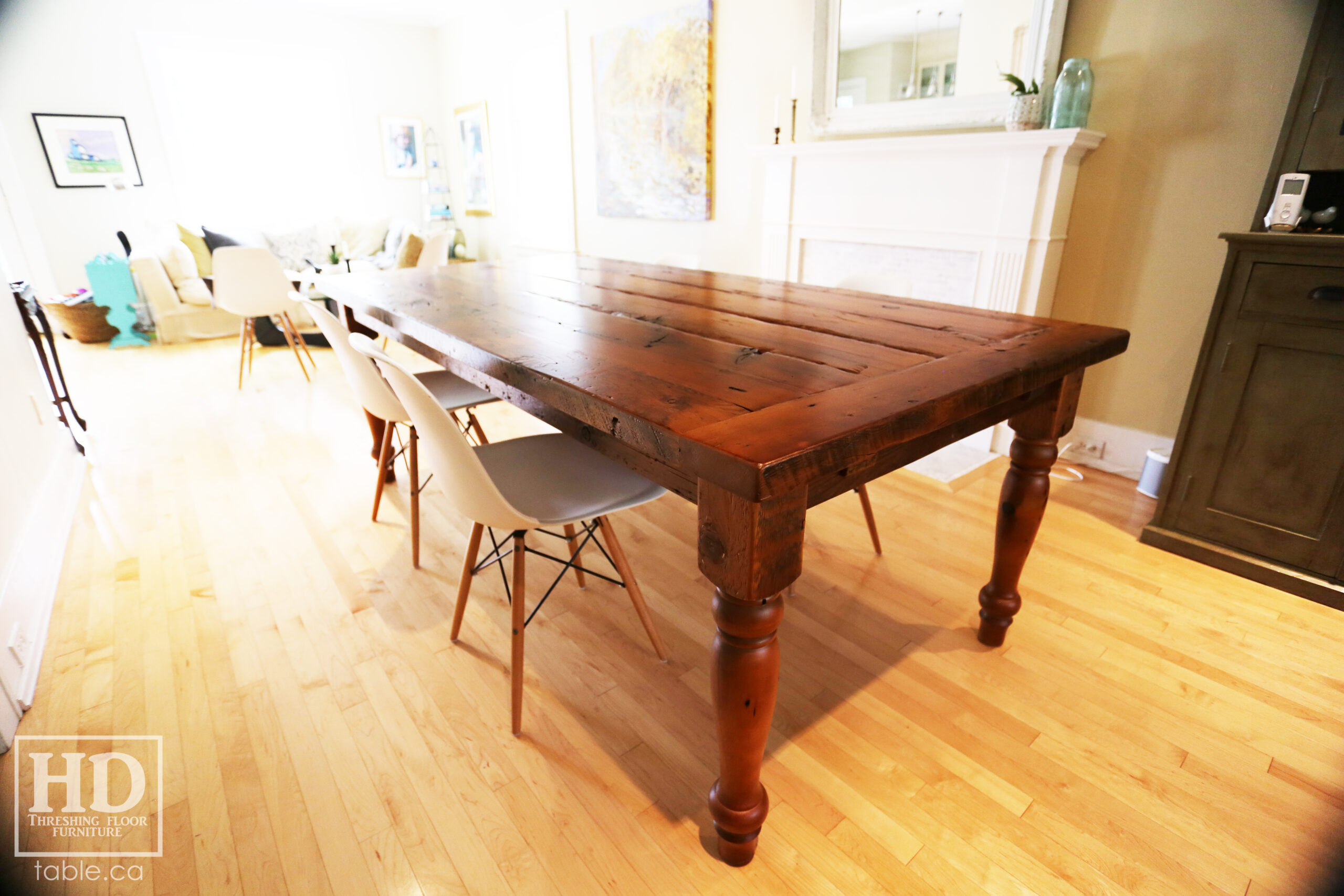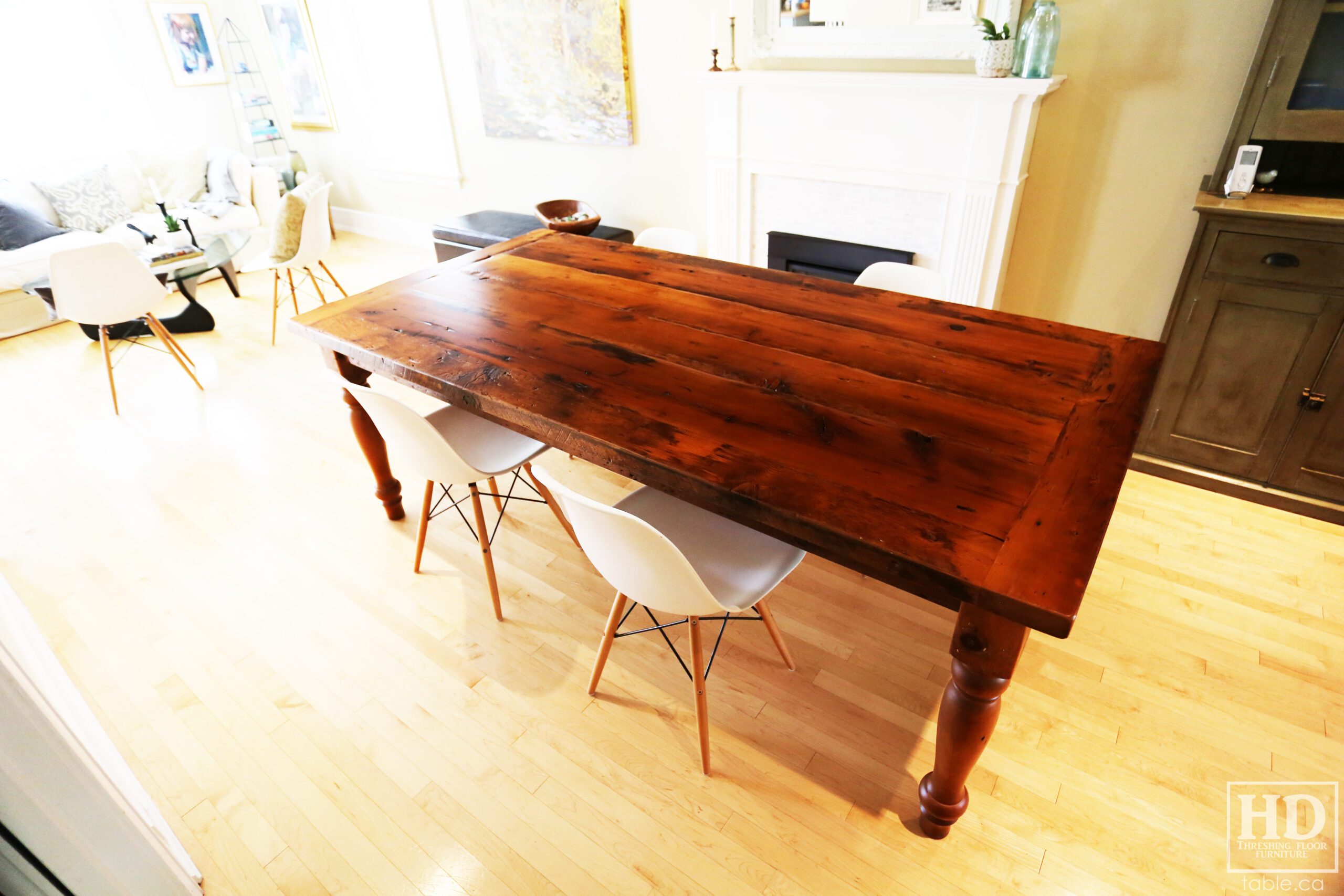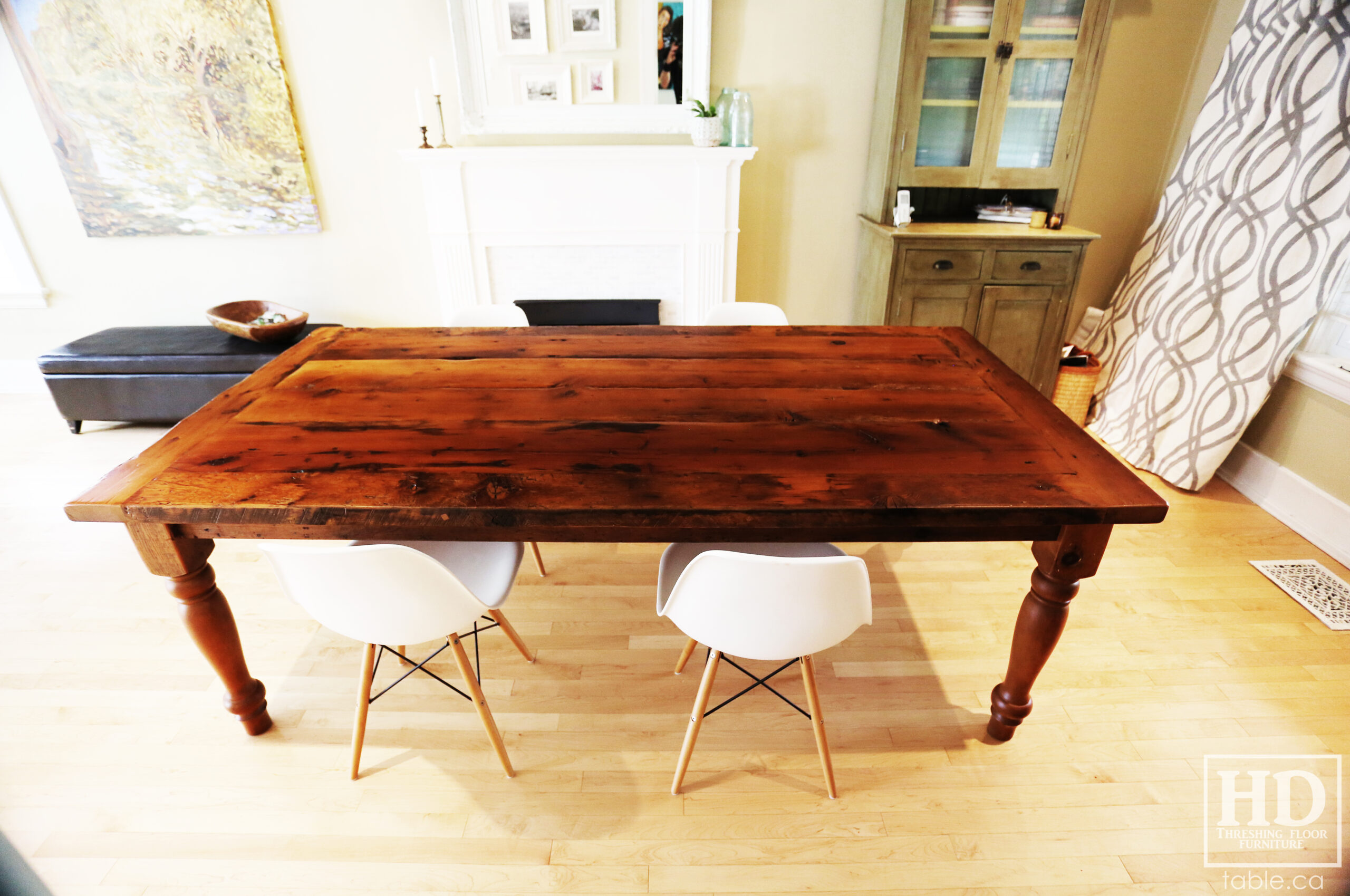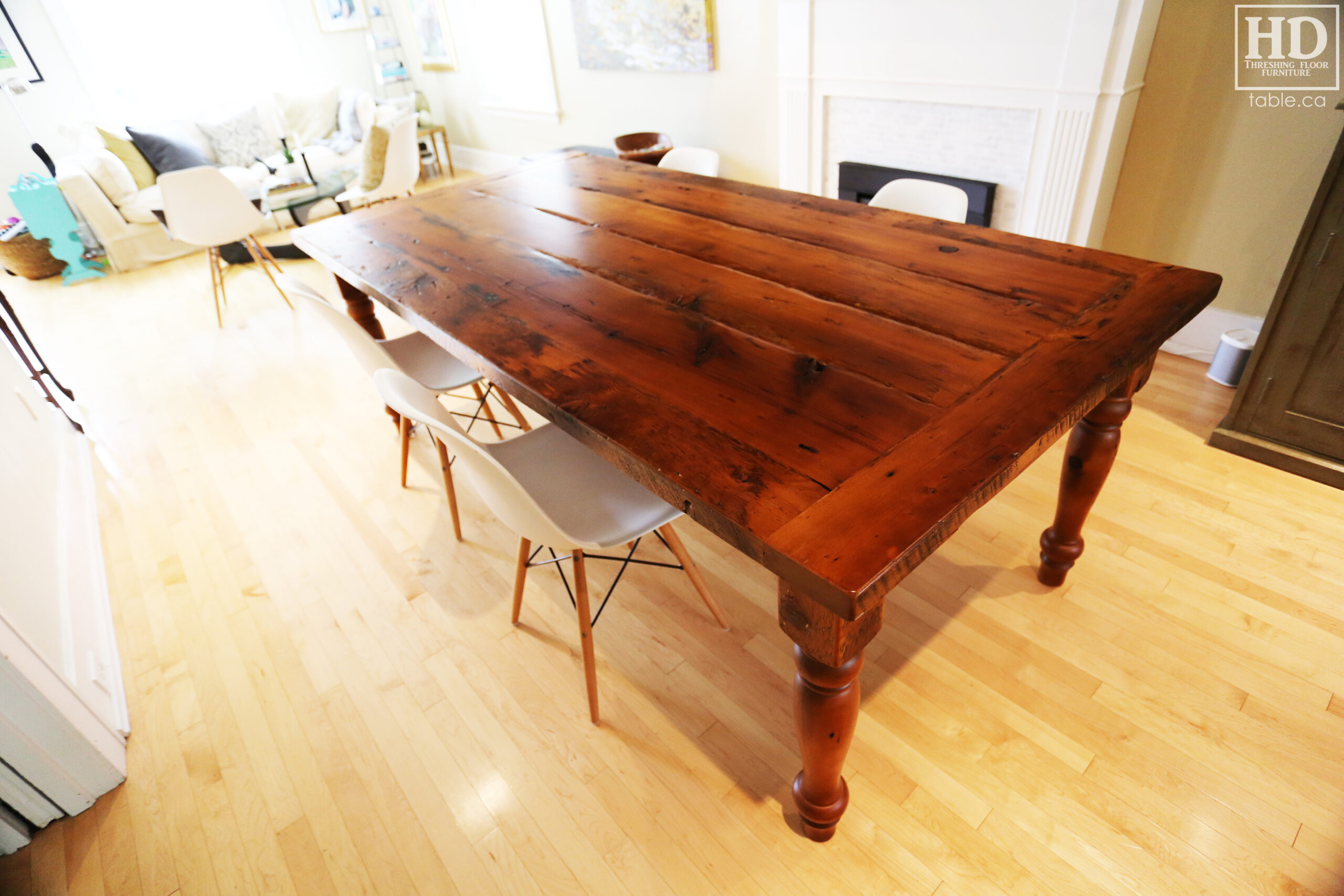 Turned Legs Harvest Table made from Reclaimed Wood & Polyurethane Finish [No Epoxy Filling Option]
