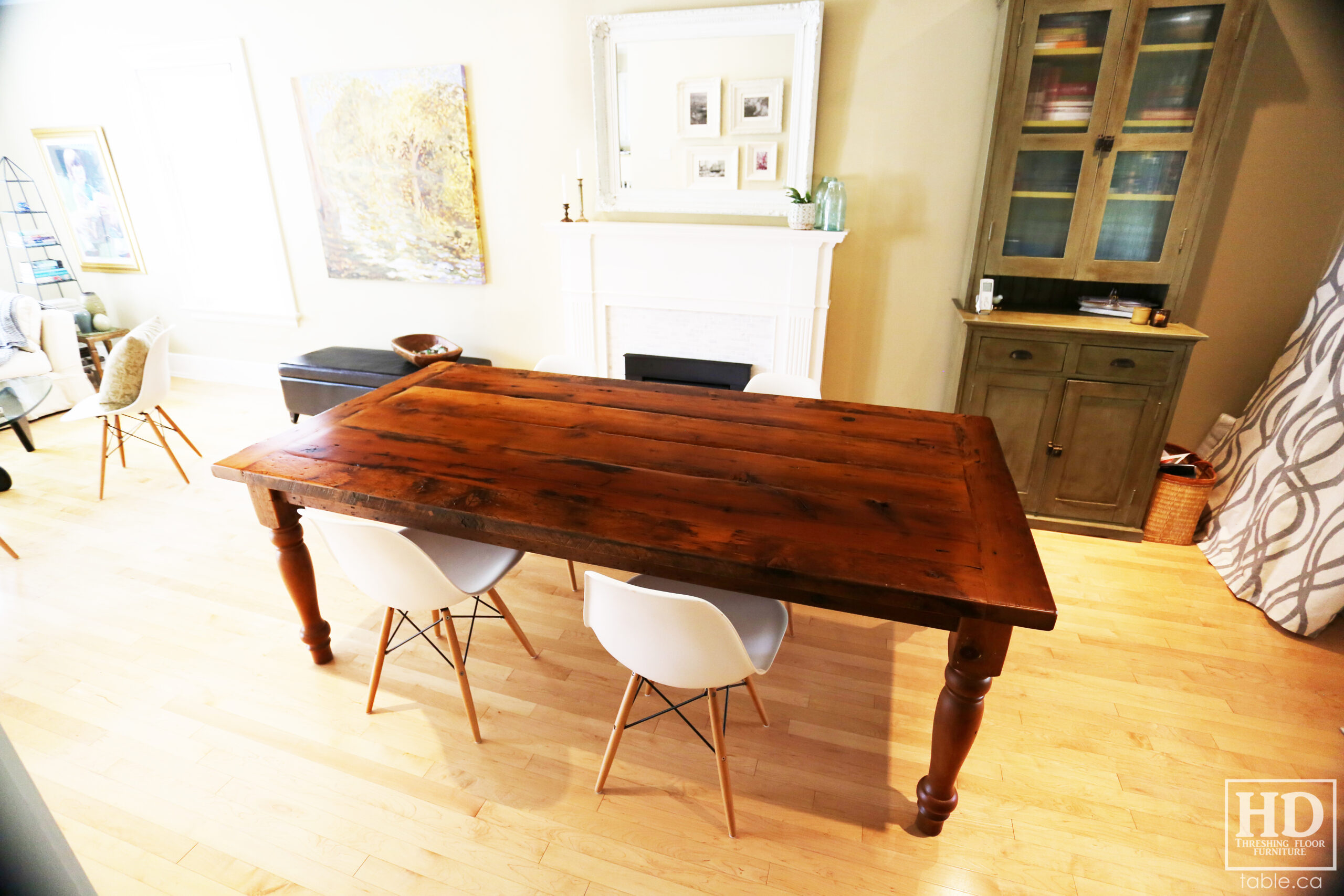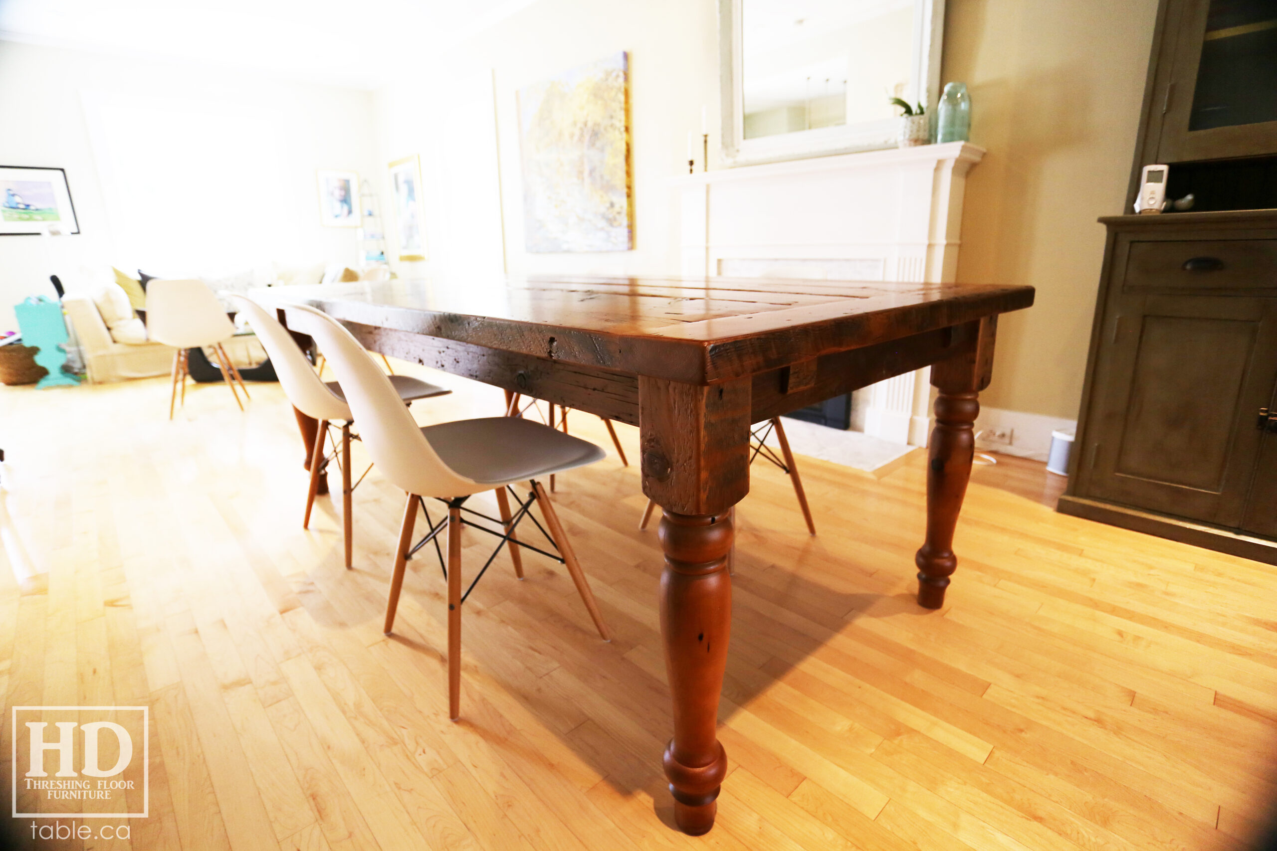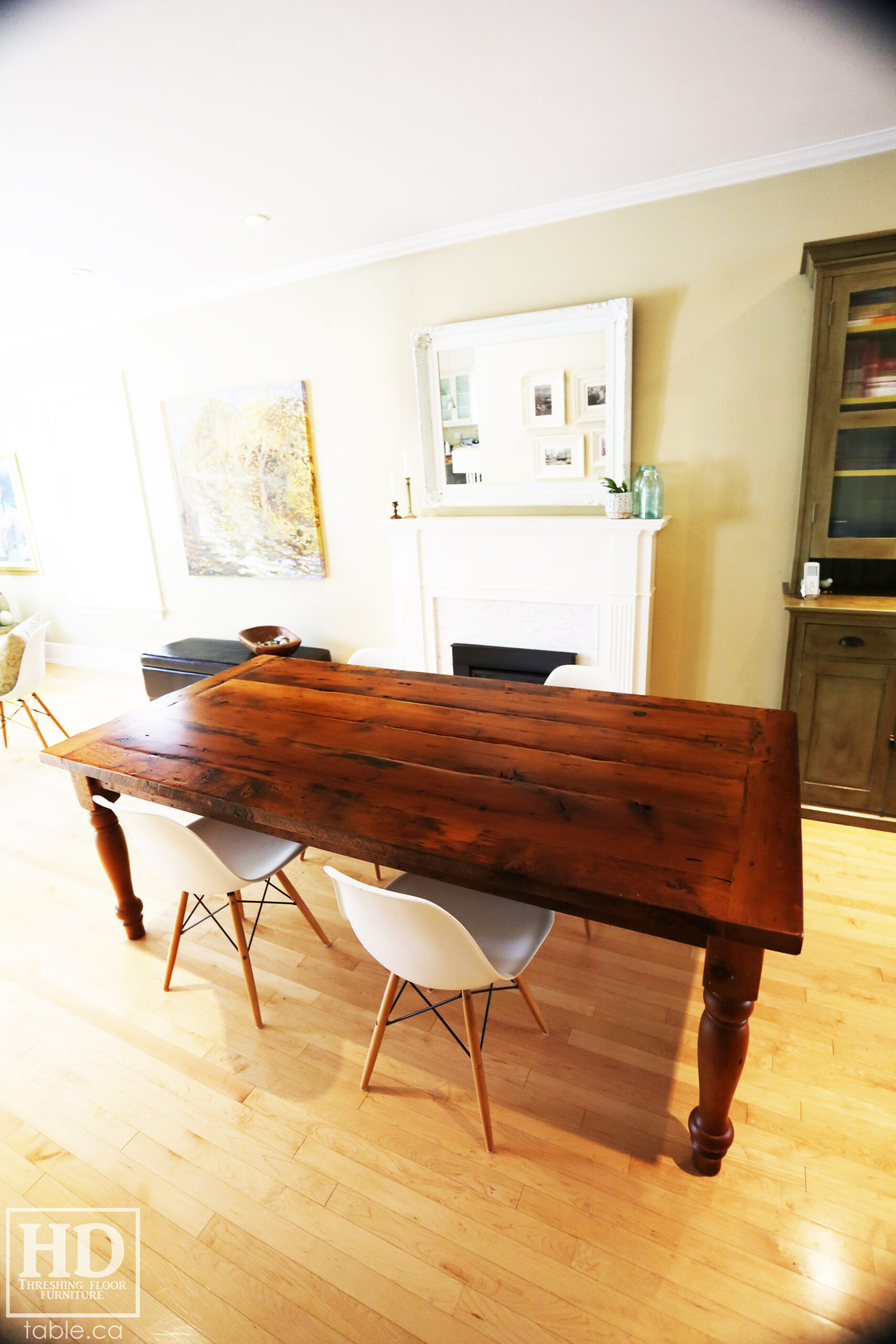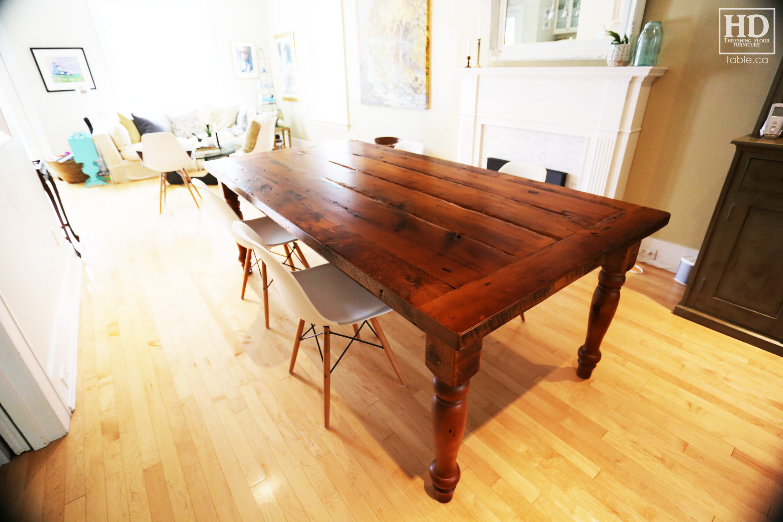 Turned Legs Harvest Table made from Reclaimed Wood & Polyurethane Finish [No Epoxy Filling Option]